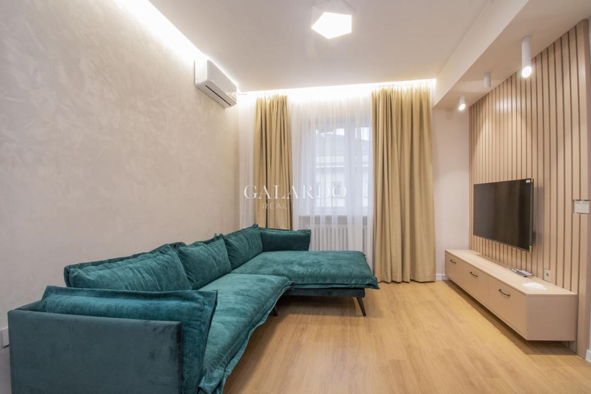 Galardo Real Estate offers a cozy, fully renovatedtwo-bedroom apartment in a top center, next to the Ivan Vazov National Theater. The apartment consists of a corridor, living room with dining room and kitchenette, 2 bedrooms with two bathrooms. Heating is by Central heating, air conditioners are also installed in every room. The kitchen is equipped with brand new appliances: 'Bosch' oven and hobs, 'Gorenje' dishwasher, 'Whirlpool' washer and dryer.