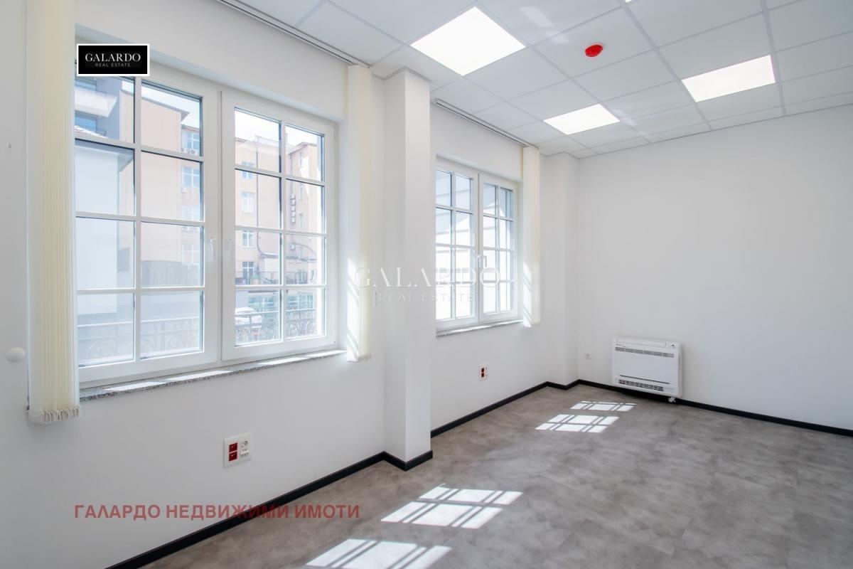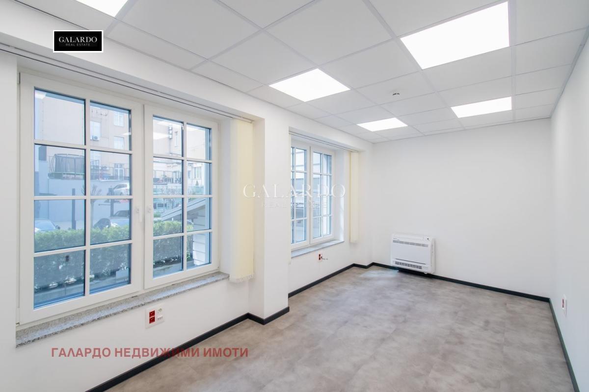 Galardo Real Estate има удоволствието да ви представи самостоятелна, триетажна представителна офис сграда до Метростанция Сердика. Имотът е изцяло реновиран и съчетава висок стандарт, престиж и функционалност.Офисът предлага оптимално разпределение на работното пространство, включващо кабинети, зали за срещи и отворени работни зони, които могат да бъдат адаптирани според нуждите на наемателя.Просторните и светли помещения, модерните инсталации и качествените материали създават комфортна и продуктивна среда за работа.Самостоятелни кухненски боксове за всеки етаж. Видео наблюдение и контрол на достъпа.Самостоятелно климатизиране на всички помещения със сплит системиПрекрасна зона за отдих и възможност за наемане на 4 външни паркоместа.Поддръжка 1.7 Евро на кв.м. или 953 евро на кв.м
