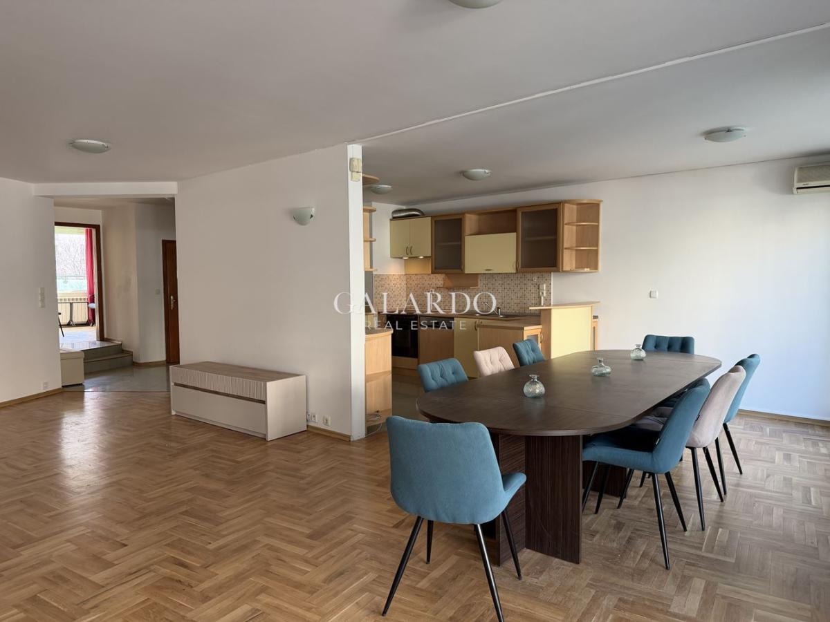 Galardo Real Estate presents a spacious three-bedroom apartment for rent, located in one of the most preferred and prestigious neighborhoods of Sofia – Lozenets. The property impresses with a total area of 165 sq .m. and offers an excellent opportunity for comfortable family living and/or developing commercial/professional activities in a calm urban environment, combined with quick access to the central parts of the capital. The apartment features a functional layout, spacious rooms, and very good lighting. Heating is provided by central heating, while cooling is through air conditioners. It is located in a building with an elevator, and the property also includes a basement, providing additional storage space. There is an option to rent a garage for 150 euros and two desks if the property is used as an office.