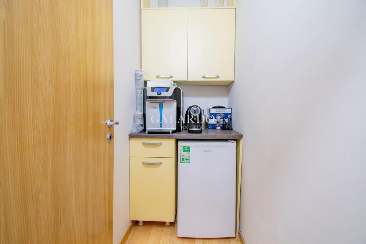 Galardo Real Estate offers an office space located in the immediate vicinity of the European Union metro station and hotel Hemus. The office consists of three separate rooms, two toilets, a small kitchenette and two balconies. The maintenance fee is 3 euros per sq. m. Heating and cooling is provided by air conditioners. The price is VAT excluded.