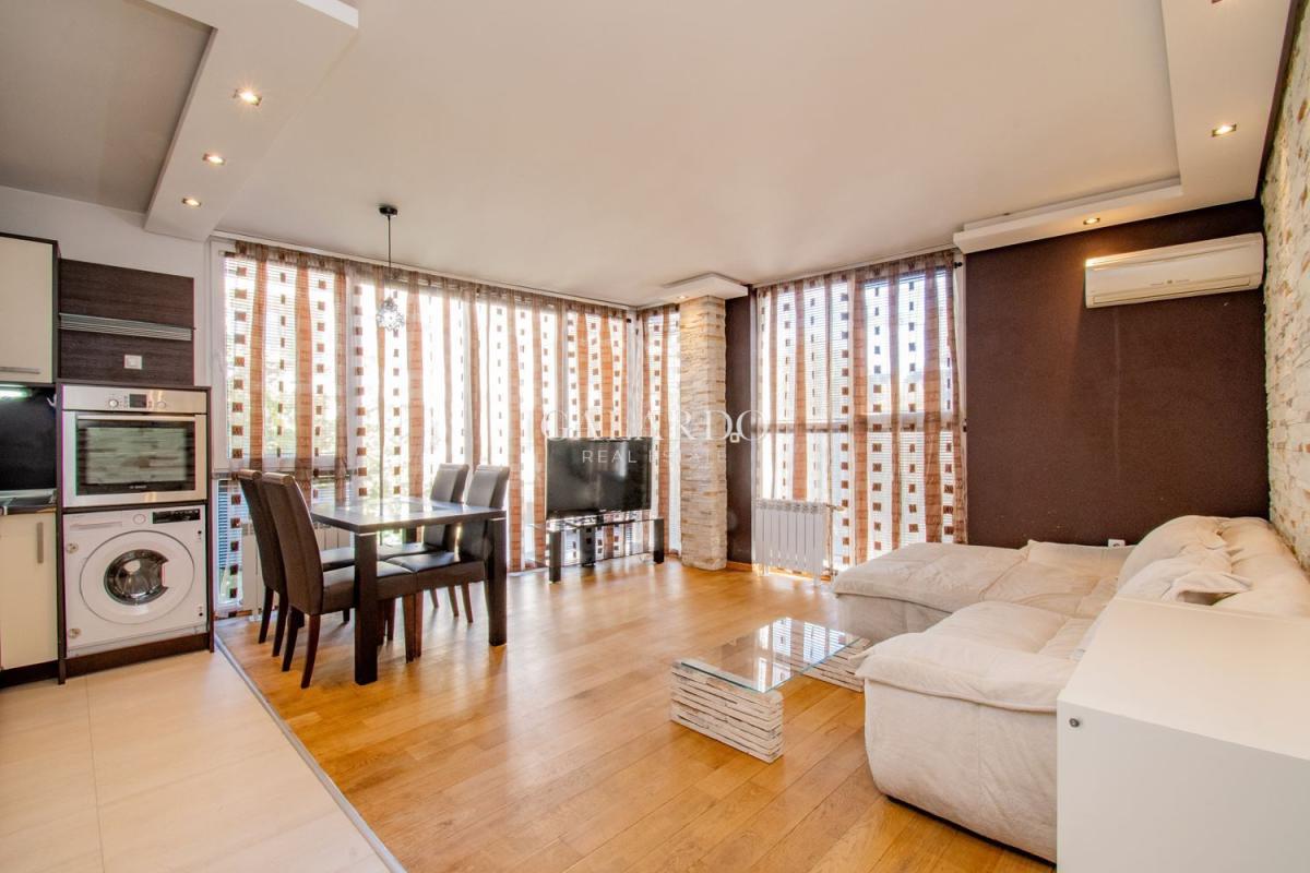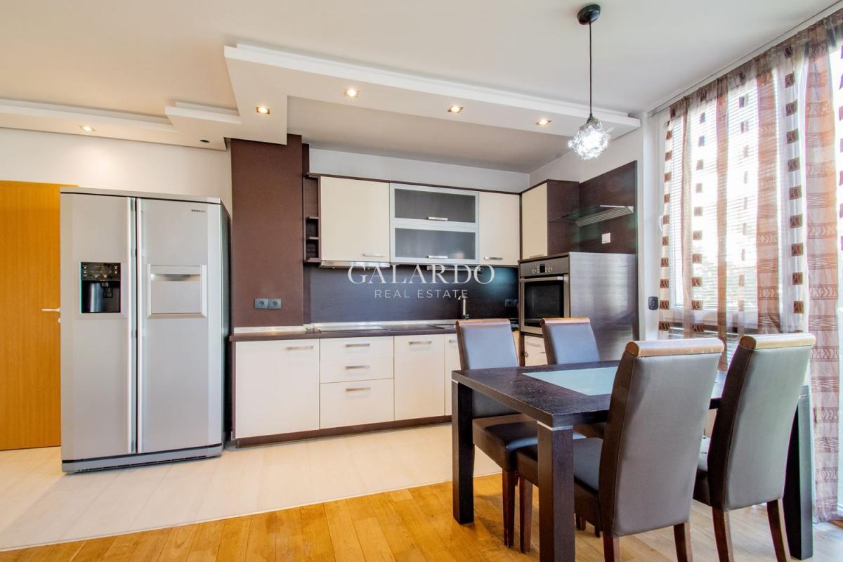 The apartment is offered fully furnished and equipped with high-class furniture and appliances.