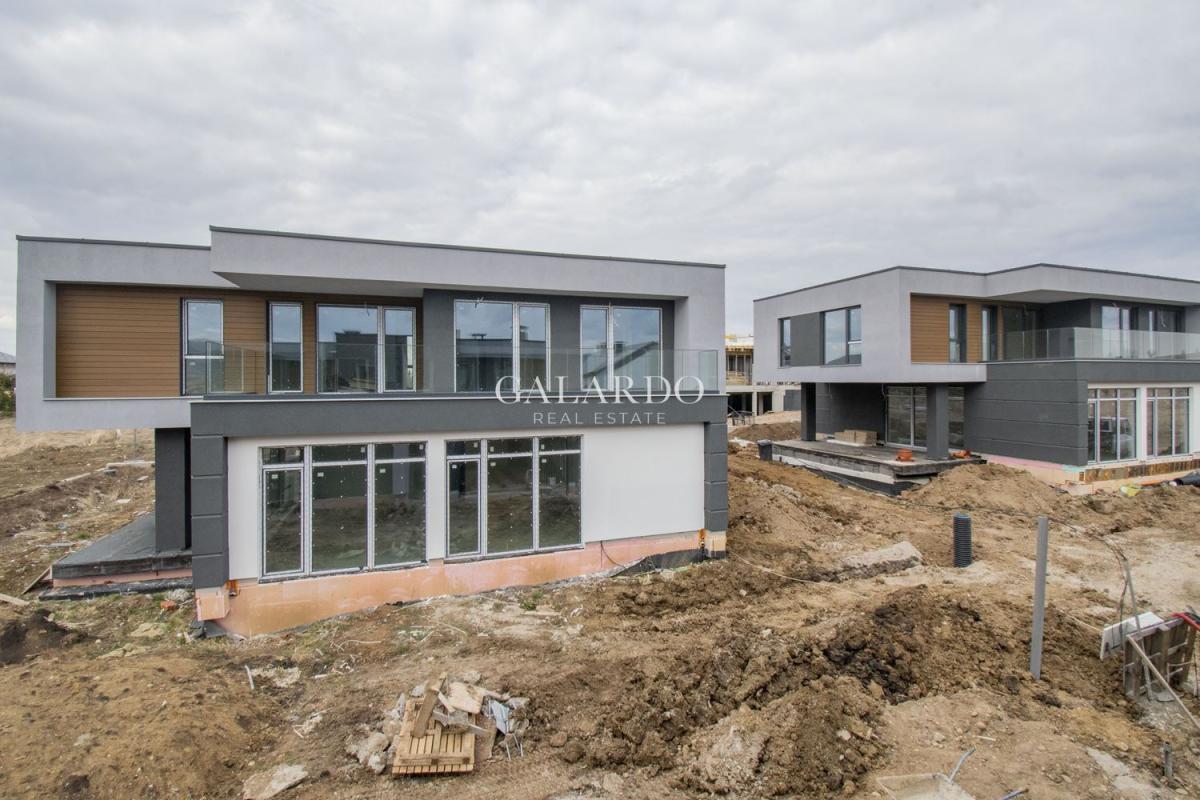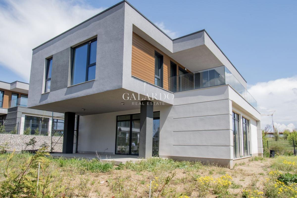 Galardo Real Estate is pleased to present you a modern, detached house with Act 16. The house is part of a small complex of 4 houses, each of which has a private yard of 650 sq.m and a built-up area of 330 sq.m. It consists of a spacious living room with kitchen and dining room, veranda, 4 separate bedrooms, 3 bathrooms with toilets, separate toilet /level 1/, utility room, 2 terraces, double garage, warehouse with technical room The facades are designed with ventilated stone cladding, HPL boards and mineral plaster.