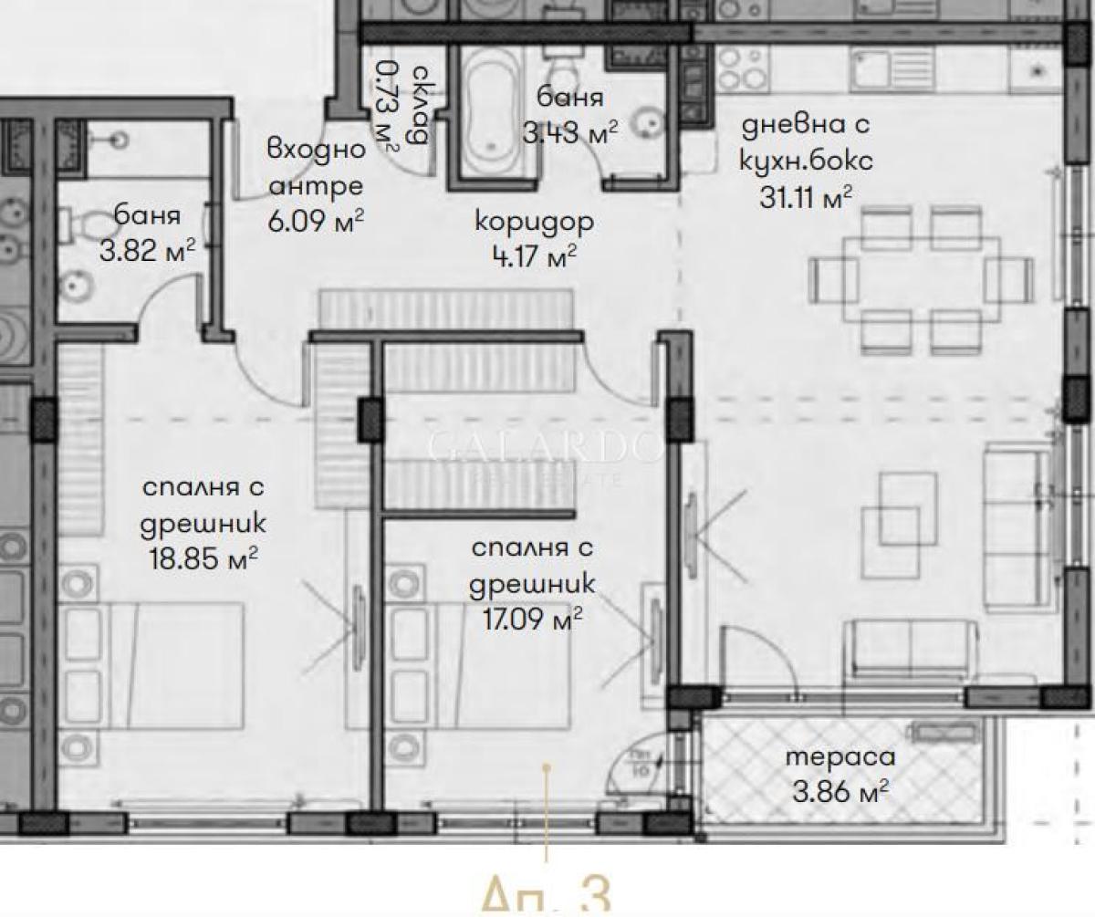 Galardo Real Estate presents to your attention a 2-bedroom apartment in a luxury gated complex in Dragalevtsi.