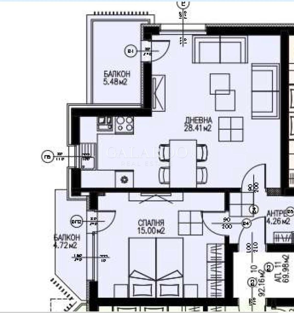 Galardo Real estate offers a wonderful one-bedroom apartment in a new residential complex with Act 16, located in Dragalevtsi district with a richly landscaped courtyard with a park atmosphere and access control. The apartment offered is on the third floor above the ground floor and has a completely southern exposure with a view of the courtyard and the mountain. The heating is gas. Ceiling height 2.70 m2. The project contractor is: GLAVBOLGARSTROY AD