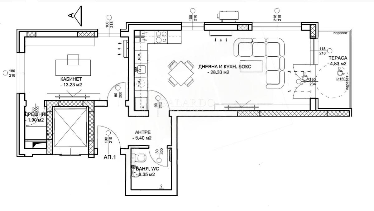 Galardo real estate presents a new one bedroom apartment in a small new building in front of the Youth Hill park. The building has only 12 apartments.
