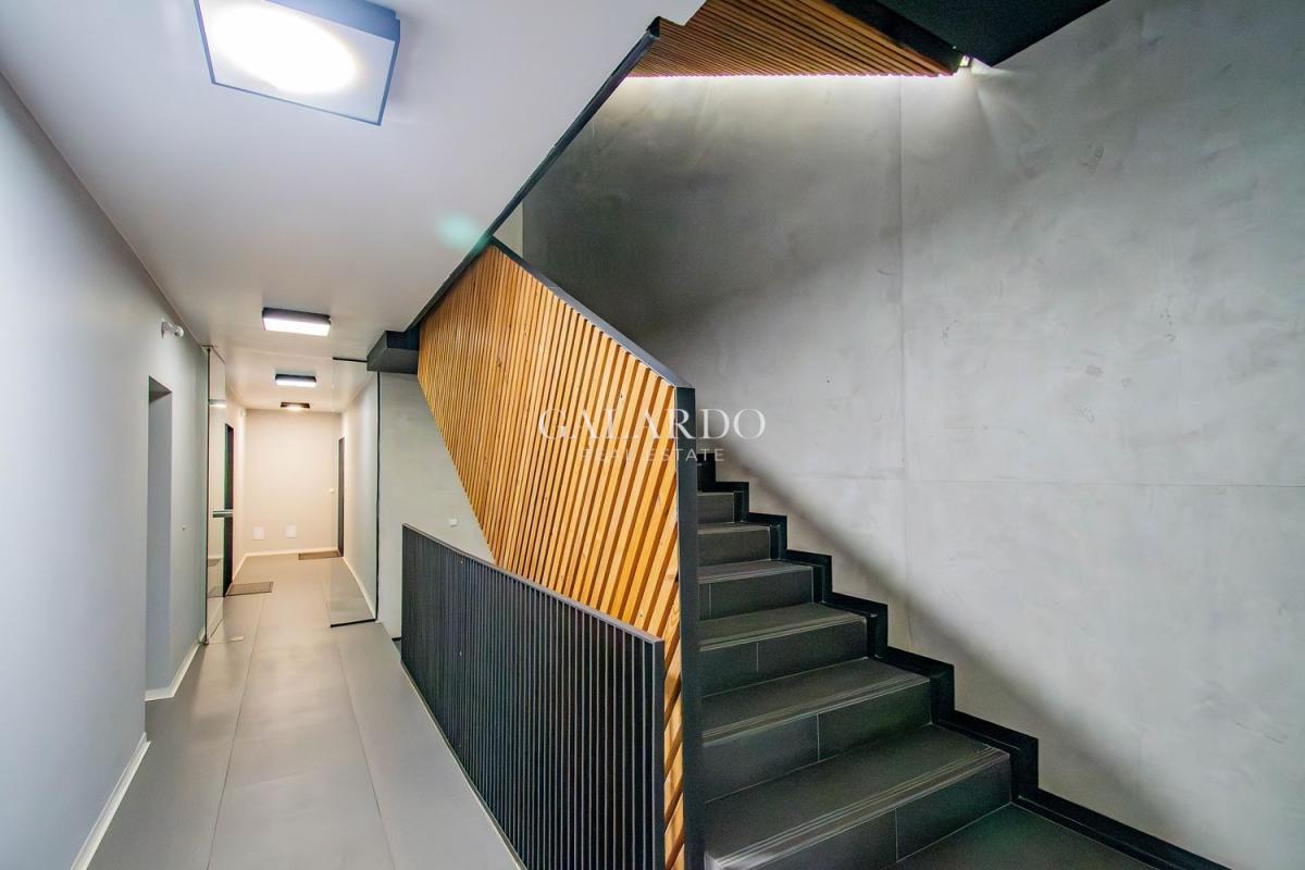 The apartment is located in a small boutique building with modern architecture and excellently maintained common areas. The design includes a ventilated facade and Schüco aluminum windows, ensuring high energy efficiency and comfort of living.