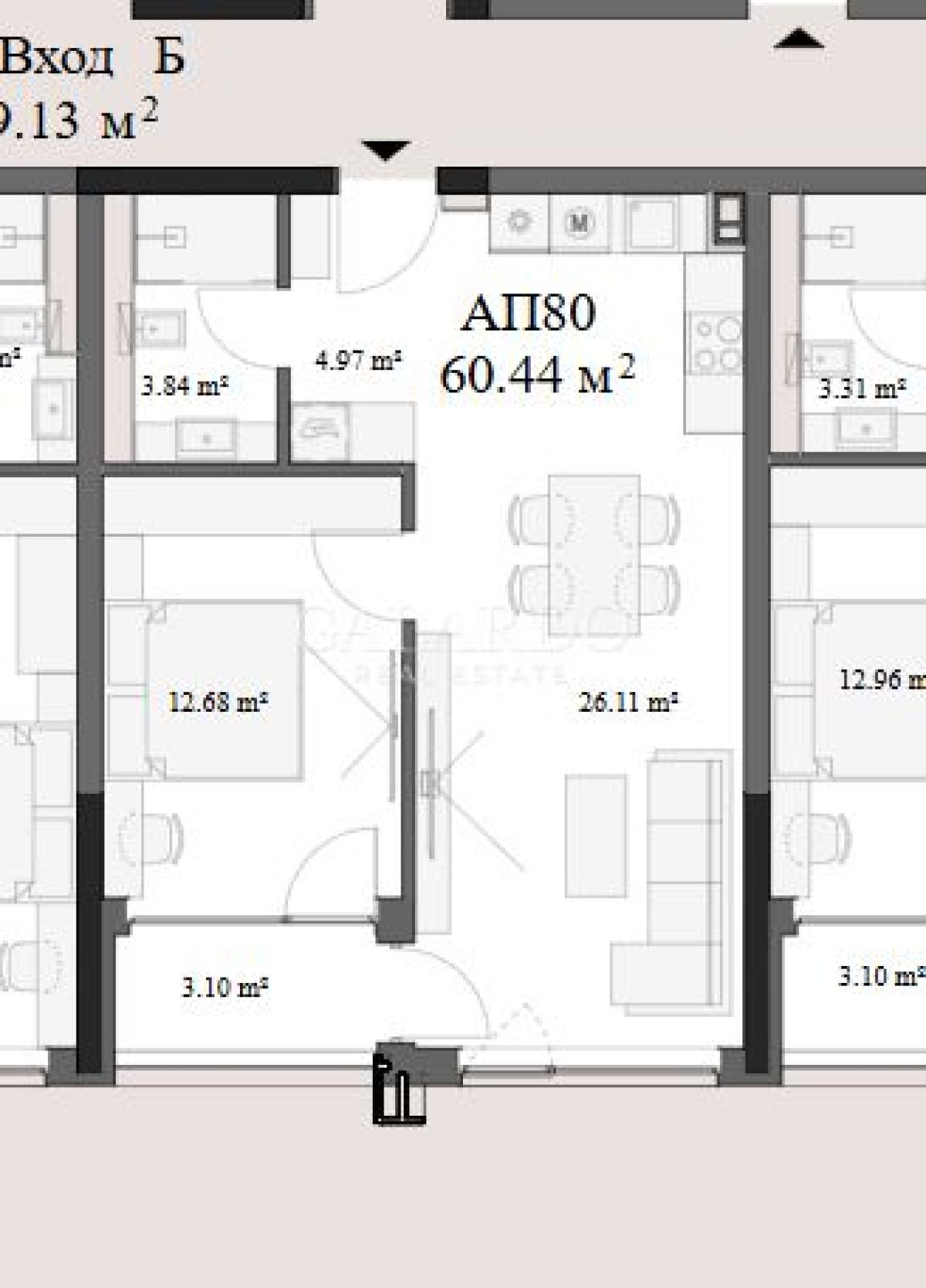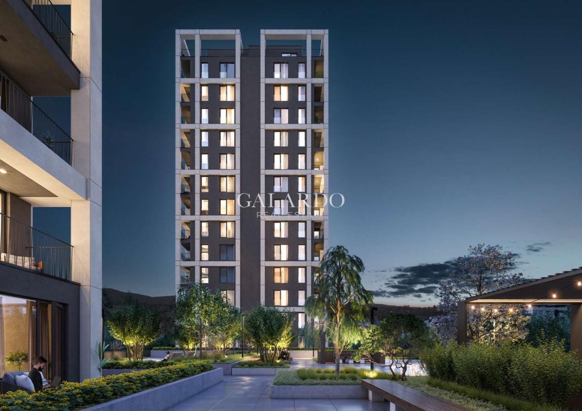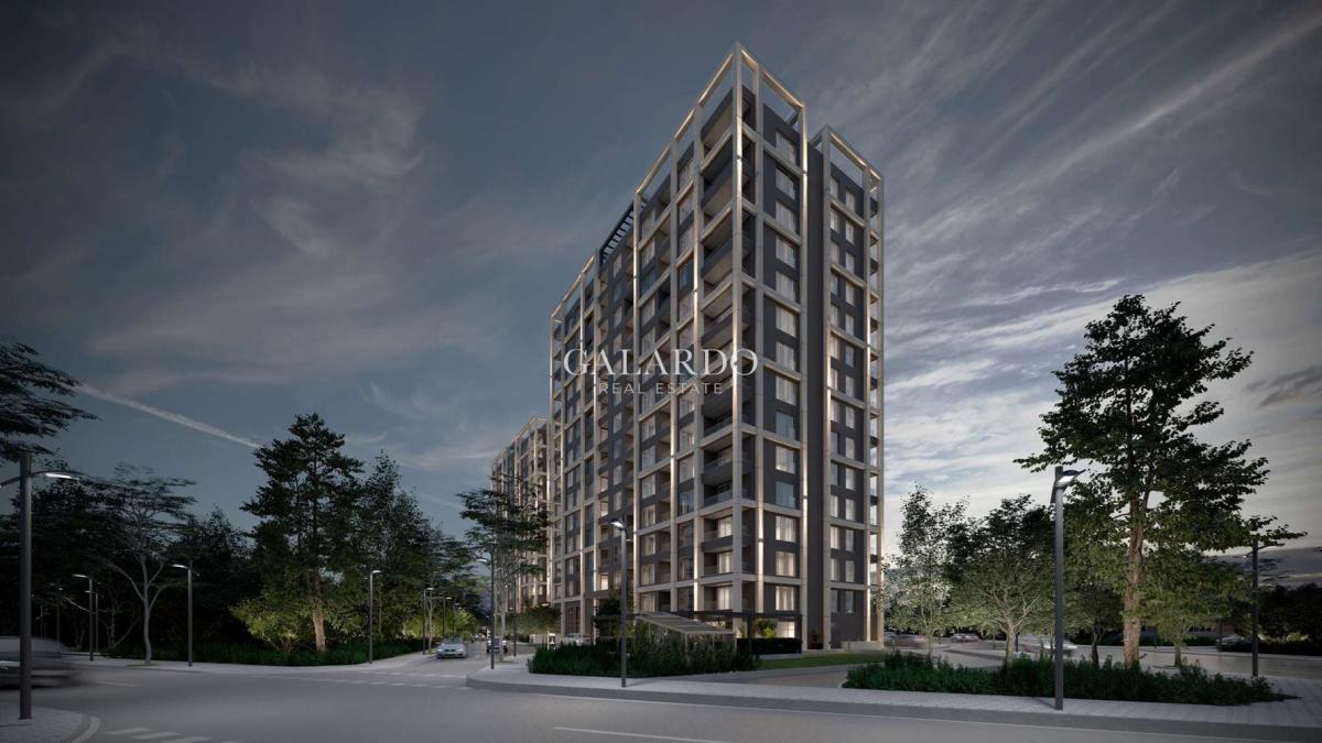 Galardo Real Estate presents a sunny one-bedroom apartment in a newly built building by a proven builder. It is located on the twelfth floor out of sixteen, with a southern exposure and a view of the mountain. Heating is provided by a CHP, with air conditioning outlets to each room. The apartments will be finished with plaster and screed with installed switches, sockets, as well as a built-in intercom system with a video connection option. The common areas will be completed according to an interior design. High-class armored doors, elevators, and window frames are installed. The complex will have video surveillance and access control.
