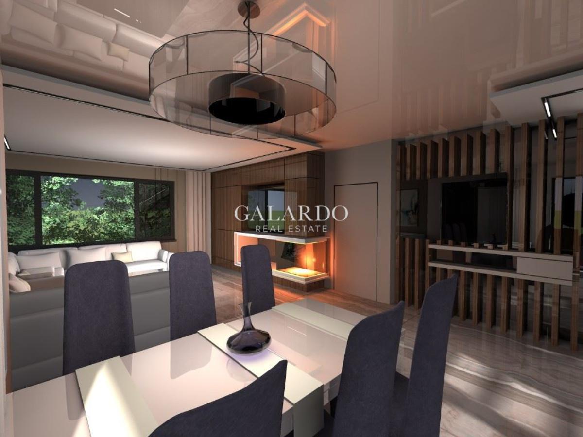 Galardo Real Estate is selling a new, modern house with its own yard at the foot of Vitosha Mountain. The house is situated in a gated complex in the Simeonovo district. The location has quick access to Simeonovsko Shose Blvd. and the Ring Road. Total area: 254 sq m. Adjacent yard: 250 sq m. Current stage of construction: act 15. The area has five private kindergartens and a school and various public transport stops. The house design is minimalist, with a combination of flat and pitched roofs, and they are designed with hidden drainage, without visible eaves, which gives the house a modern and stylish look.