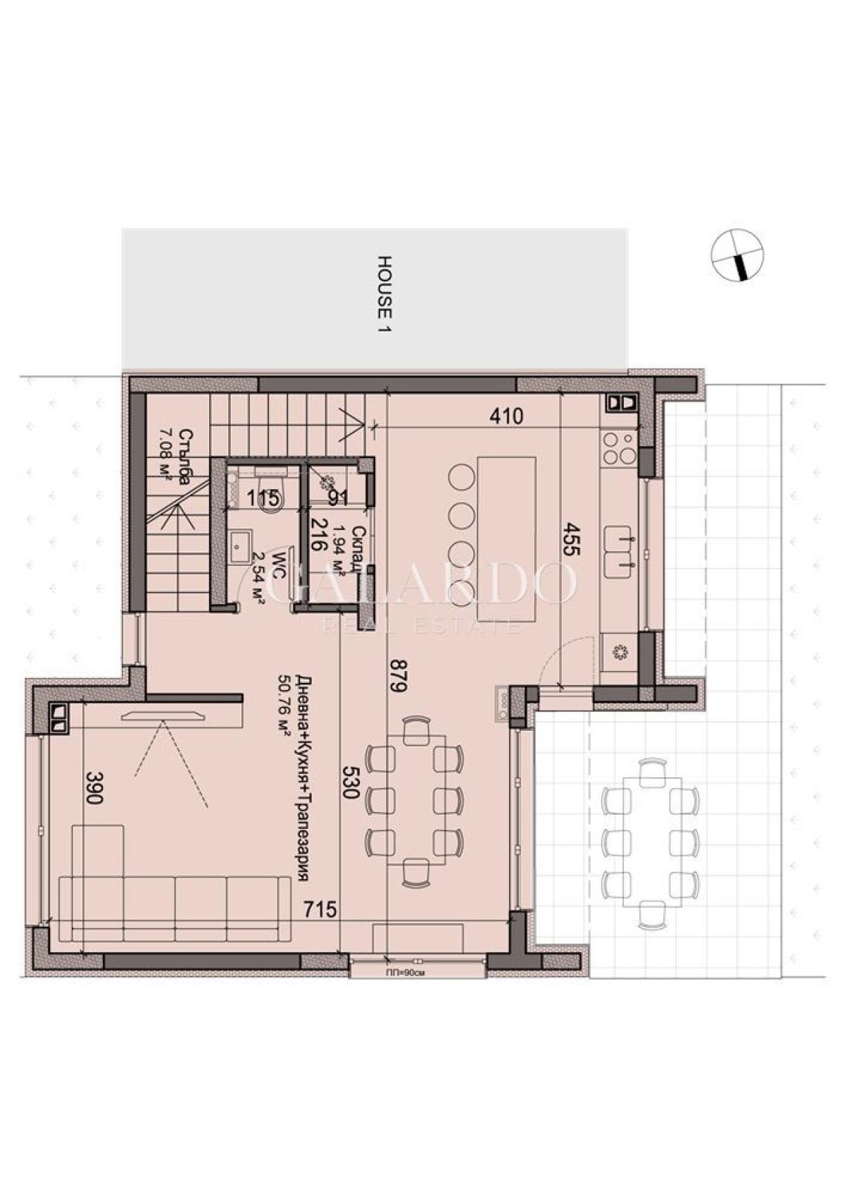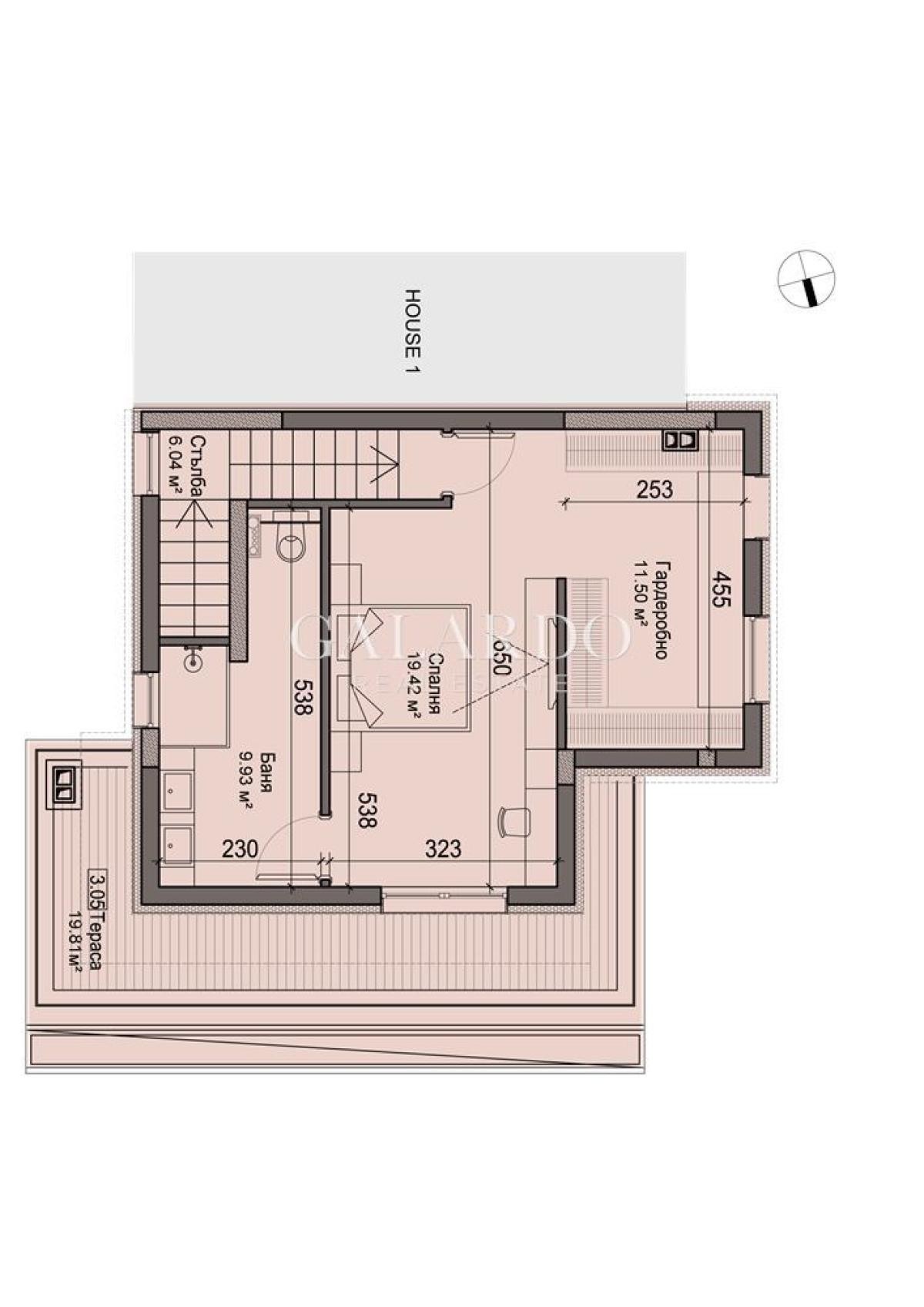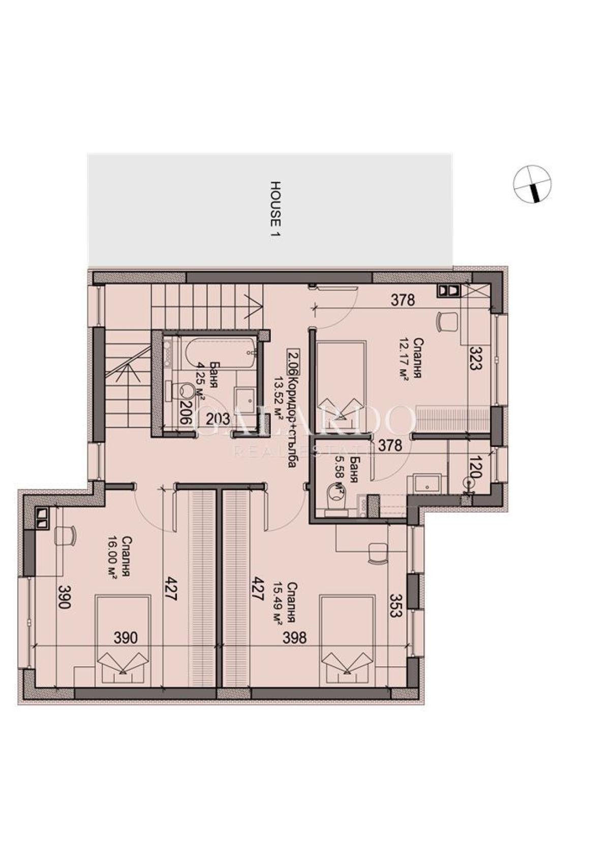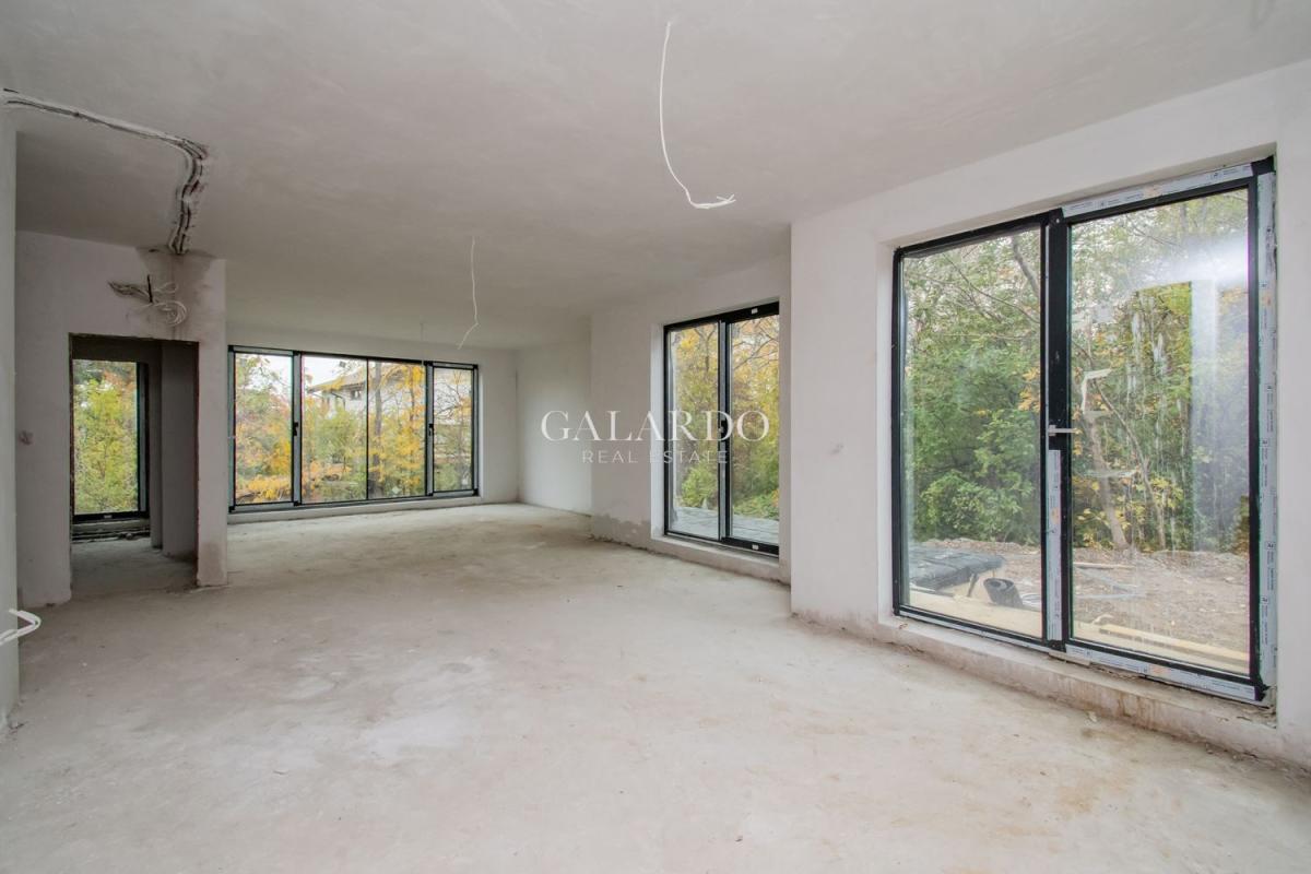 Galardo Real estate is pleased to present you a twin house with a square footage of 345 sq.m., part of a new residential complex in Dragalevtsi district, "Cinema Center - Part I", built on a plot of 2,137 sq.m. The complex consists of 6 single-family houses: 4 terraced and 2 semi-detached. Each of them has: a spacious living room with dining room and kitchen; 4 bedrooms and a study and/or wardrobe room, and the four larger houses can be converted to 5 bedrooms (4 bedrooms according to an approved project and the possibility to separate another one on the ground floor next to the living room); with 3 bathrooms with WC and a separate WC for guests next to the living room; utility room for washing machine, dryer and ironing board; storage facilities; technical room; terraces with wonderful views of Vitosha and Sofia; private yard with decking for barbecue area; with 2 or 3 parking spaces.