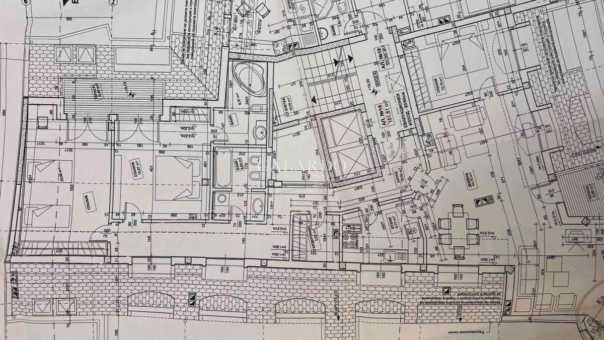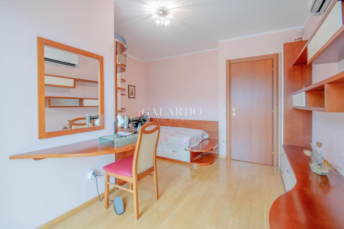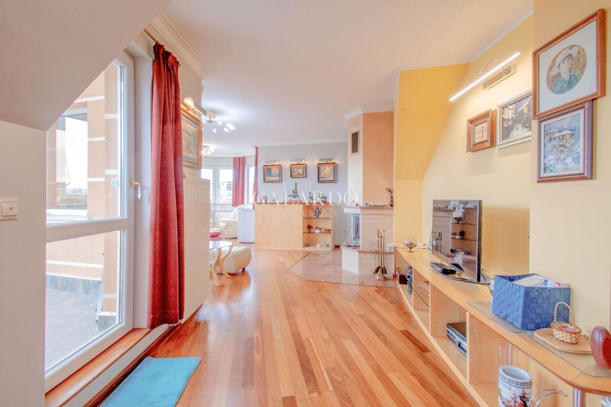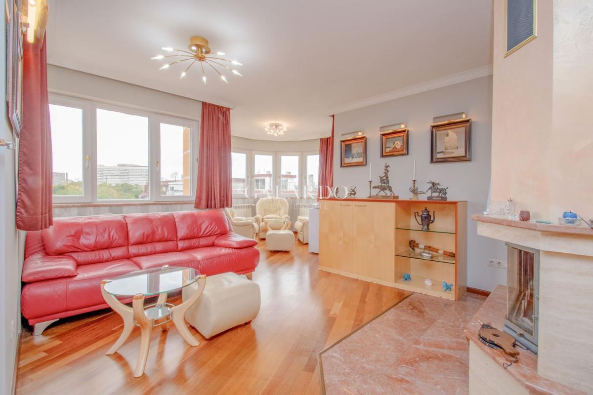 The apartment has a total area of 223.68 sq m. (net area 188.66 sq m.) and impresses with its light and spaciousness. The layout is functional and comfortable: Living area, dining room and kitchenette, three separate bedrooms, large bathroom with private sauna, second bathroom, four terraces with pleasant views.
