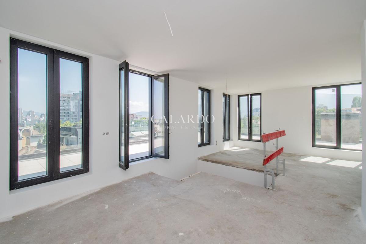Galardo Real estate presents a magnificent and spacious three-bedroom maisonette in a boutique building in front of Act 16 in the prestigious Iztok district. The property is located on the 6th and 7th residential floors with direct elevator access to the apartment and has a total area of 314.22 sq m on both levels and is surrounded by panoramic terraces /outside the specified area/, from which incredible views can be seen.