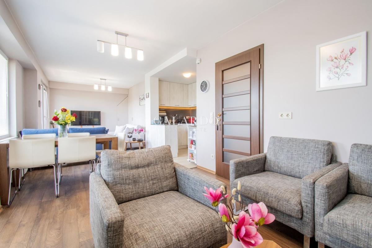 Съвременна термопомпена система, осигуряваща ефективно отопление и охлаждане чрез подови конвектори – гаранция за целогодишен комфорт. Със своята обща площ от 174 кв. м. това жилище съчетава стил и функционалност, идеално за семейство или ценители на качествената градска среда. В близост до паркове, училища, метро, бързи връзки към центъра и изходите на града. Сграда с разрешение за ползване от 2015 г., асансьор, добра поддръжка и висококачествено строителство.