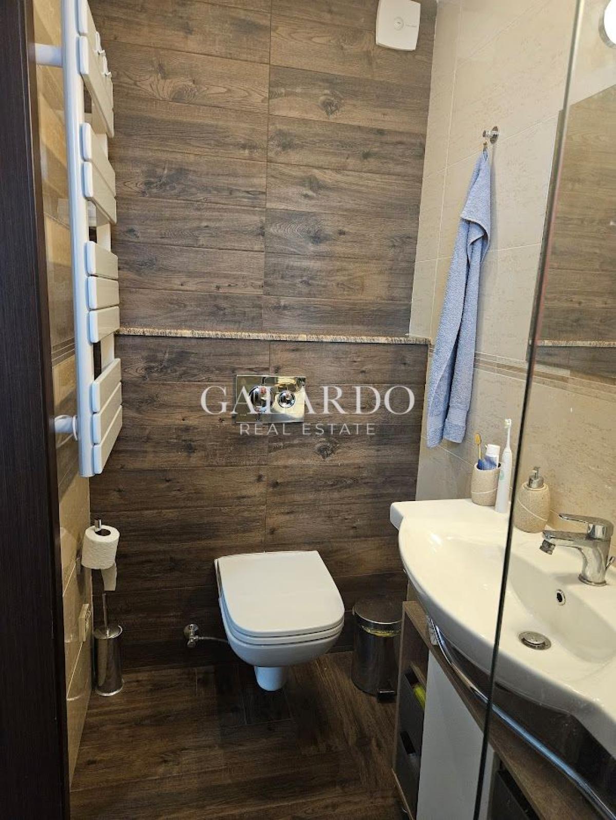 Апартаментът е изцяло обзаведен с внимание към всеки детайл – стилни интериорни решения и функционални зони, създаващи усещане за уют и естетика.