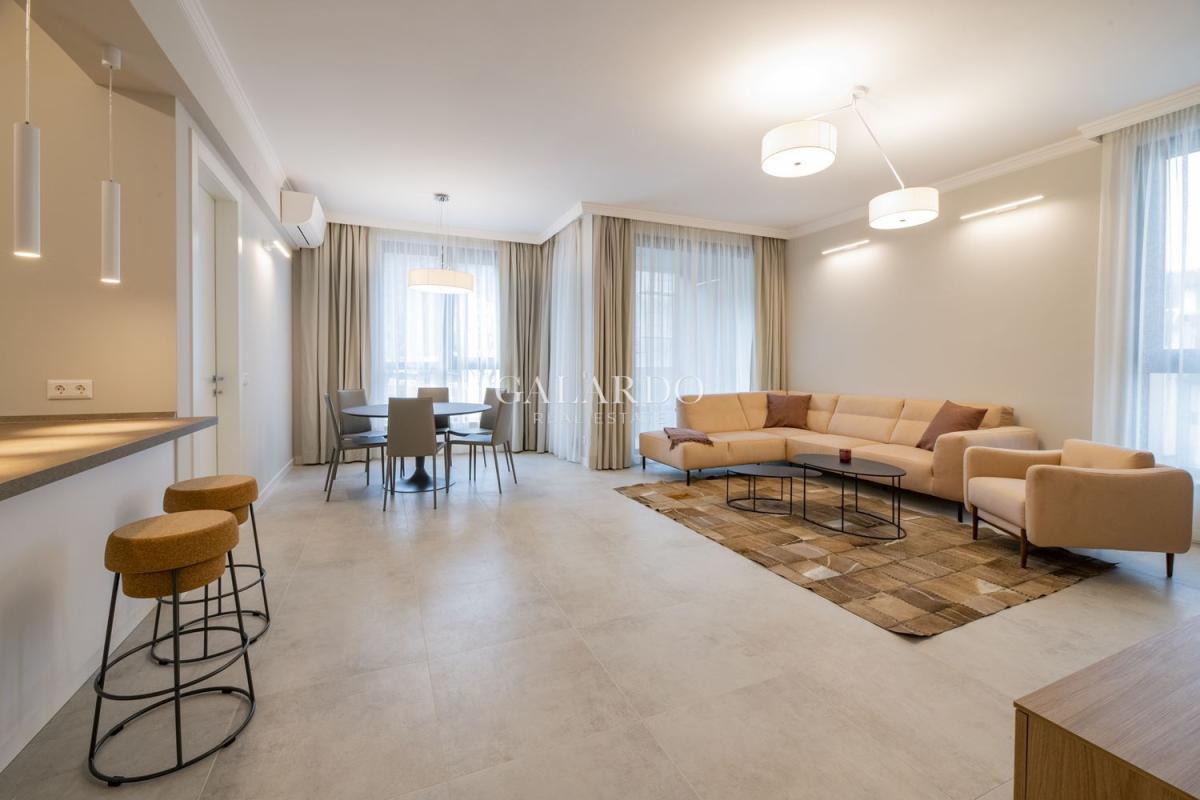 Galardo real estate Ви представя страхотен апартамент с четири спални, всяка от които с индивидуална баня. Жилището е просторно, светло и функционално. Имотът е чисто нов, напълно обзаведен и оборудван, разположен на трети етаж, в комплекс от затворен тип, предлагащ множество удобства, като открит плувен басейн, фитнес, детски площадки и паркова среда. Към апартамента има двоен гараж на цена от 150 Е без ДДС. Наемната цена е без включен ДДС. Такса поддръжка е за сметка на наемодателя.