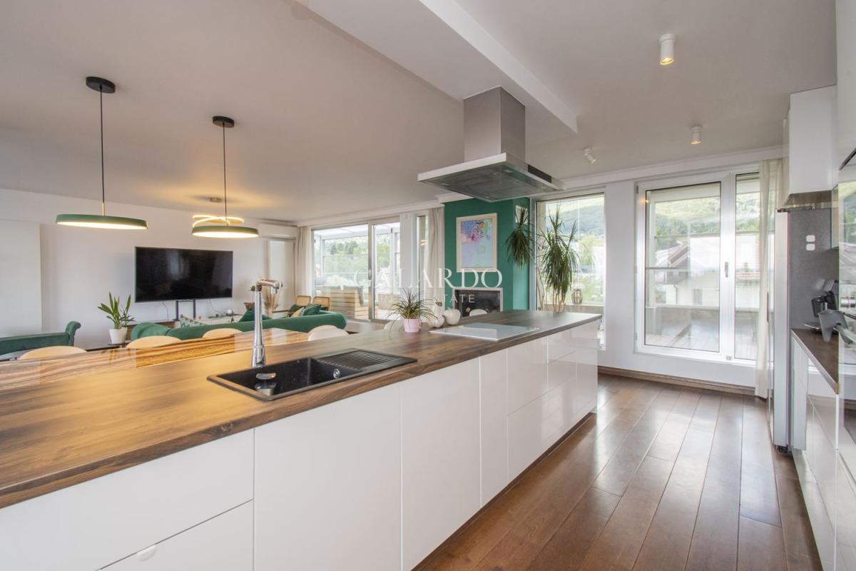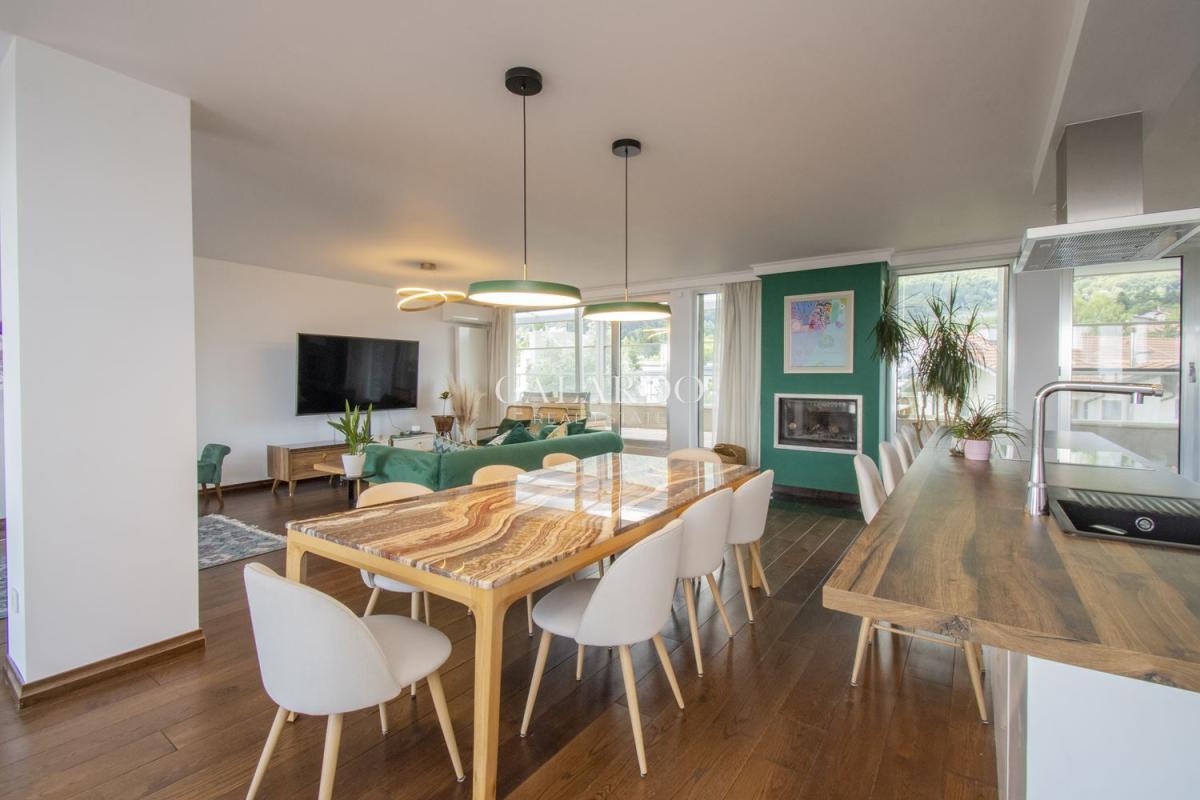 Апартаментът е опасан от четири просторни тераси, откриващи 360-градусови гледки.