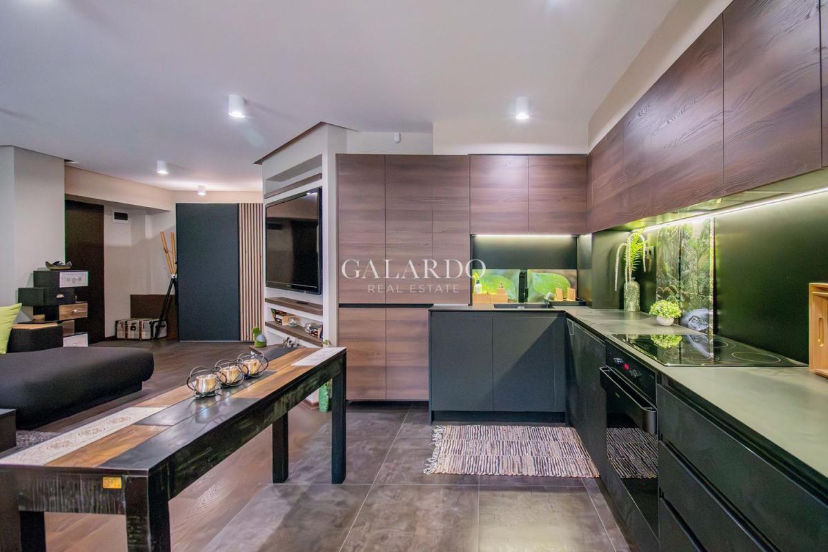 Разпределението е удобно, със светли и просторни помещения. Интериорът е изискан и стилен, подовите настилки са от естествен паркет, създаващ усещане за топлина и уют. Кухнята е напълно оборудвана. Спалнята разполага с практичен дрешник, осигуряващ допълнително пространство за съхранение.