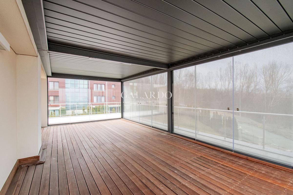 Намира се на последния 5-ти етаж, с тераса около целия апартамент, част от която е остъклена и с мебели.