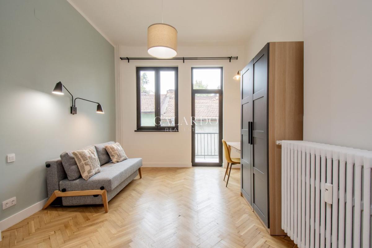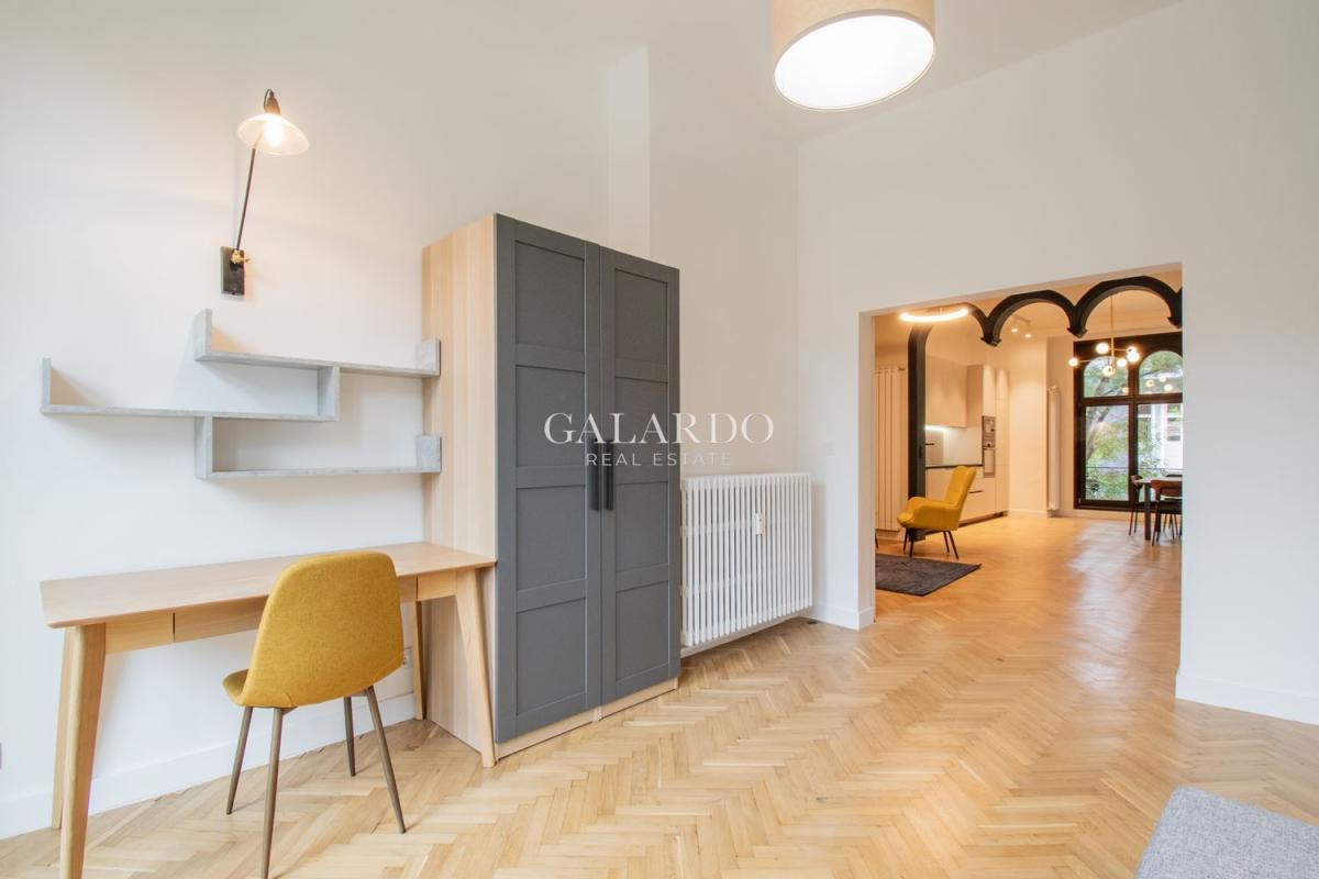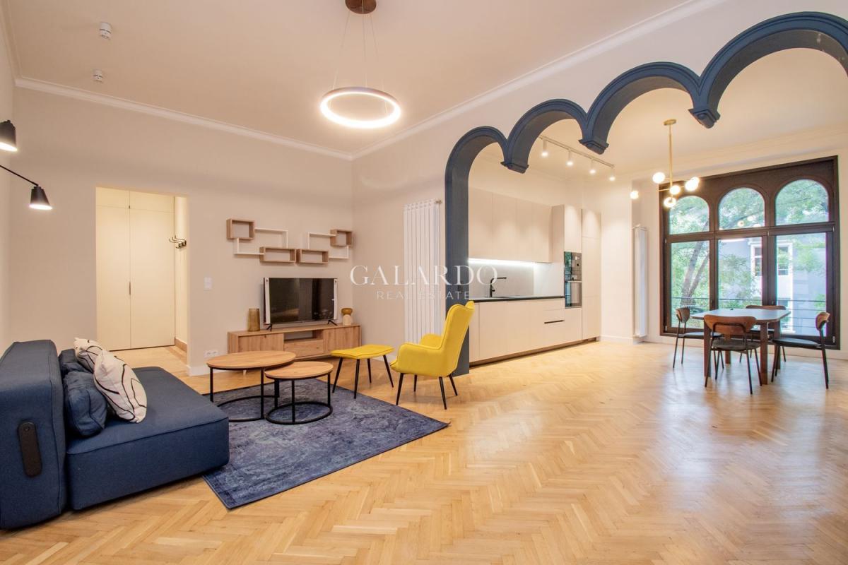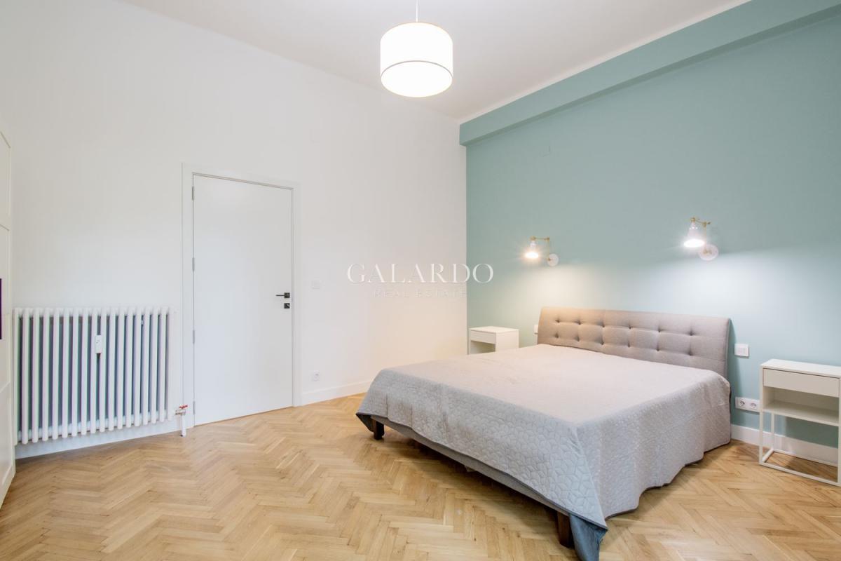 Galardo Real Estate ексклузивно отдава под наем слънчев и светъл апартамент с три спални на ул. "Искър". Имотът е с площ 120 кв.м. и е след основен ремонт. Височина на таваните: 3.60 м. Състои се от изключително просторна дневна с обособена кухня, трапезарна зона и просторен хол, три спални, две бани със санитарен възел и тераса. Изложение: юг/север. Отопление: ТЕЦ. Намира се на пешеходно разстояние от катедралата "Александър Невски", Софийска опера и балет и парка на Царската градина.