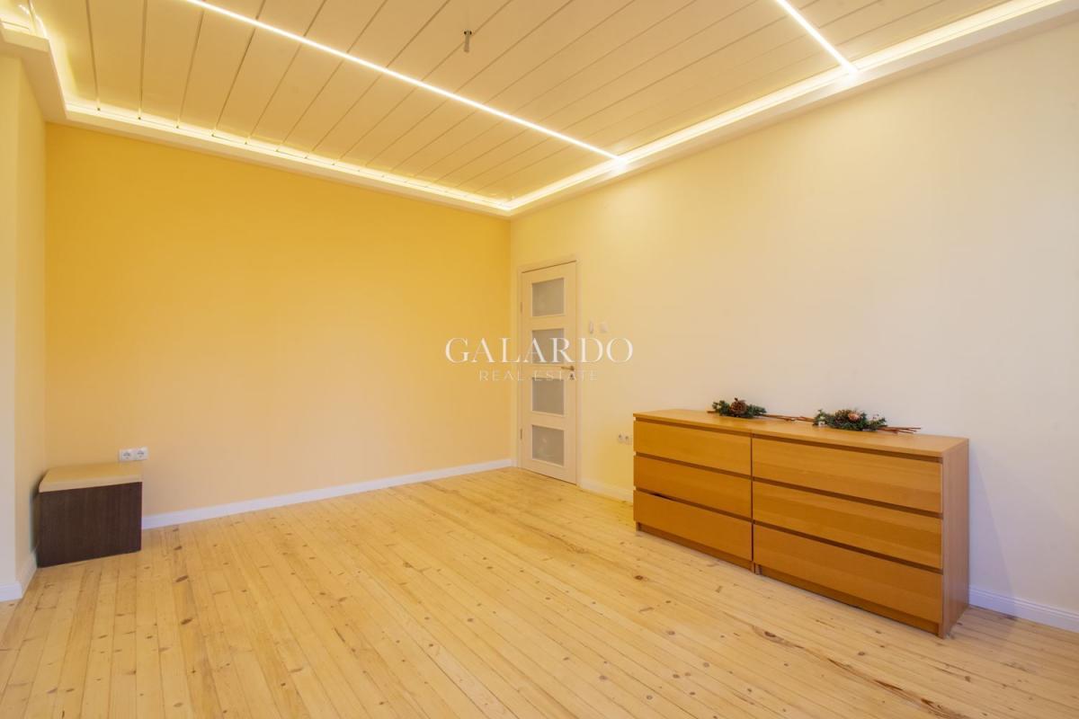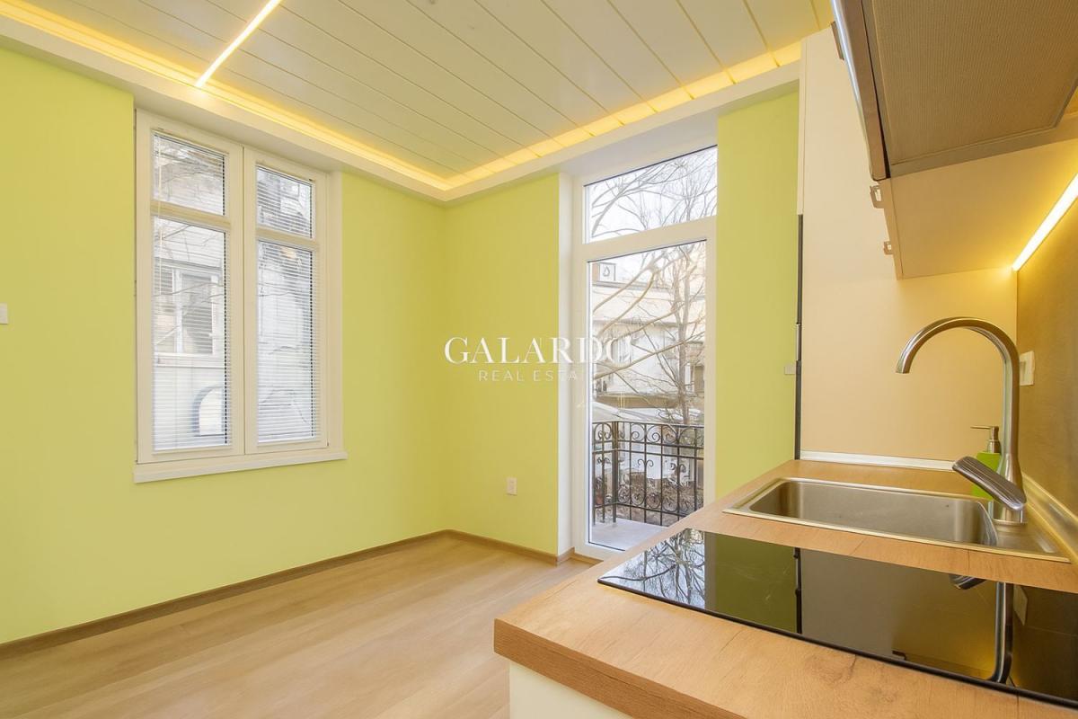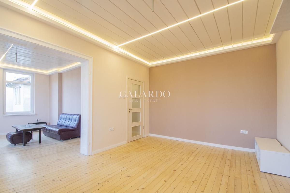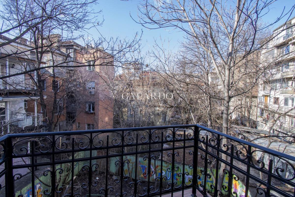 Жилището е напълно реновирано, със запазено автентично дюшеме и характерен софийски чар. Намира се на трети етаж в представителна сграда с отлично поддържани общи части.