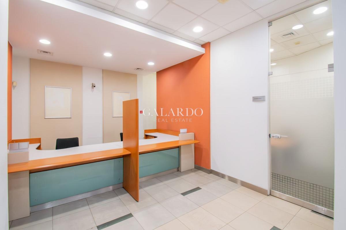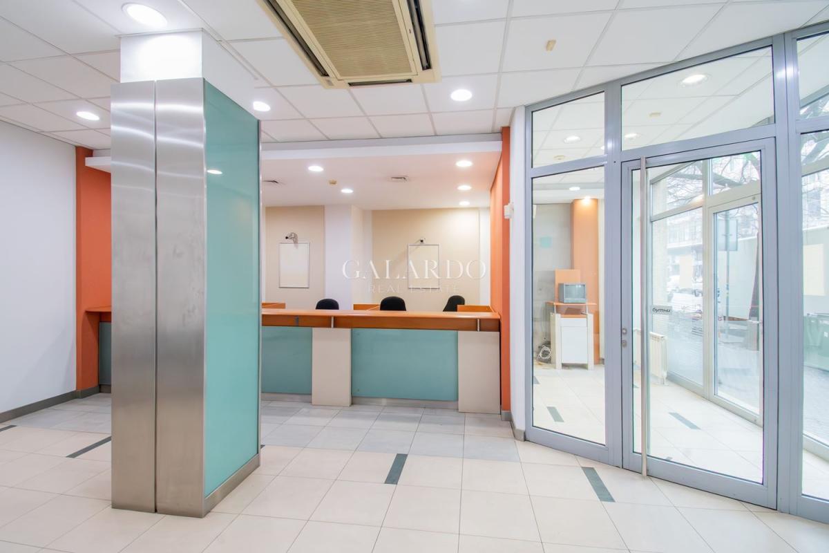Светъл и представителен офис, разположен на партер с директен достъп от улицата и отлична видимост. Имотът впечатлява с модерно изпълнение, високи тавани с вградено LED осветление и функционално разпределение, подходящо за обслужване на клиенти. Пространството включва просторна приемна/чакалня, няколко работни гишета или зони, отделени с елегантни прегради, както и големи витринни прозорци, които осигуряват естествена светлина през целия ден. Подовите настилки са износоустойчиви, интериорът е в неутрални тонове, а климатизацията е централна, което гарантира комфорт през всички сезони. Офисът е подходящ за банка, застрахователна или финансова институция, медицински или консултантски център, както и за корпоративно представителство, търсещо престижна локация и готово за незабавно ползване пространство.