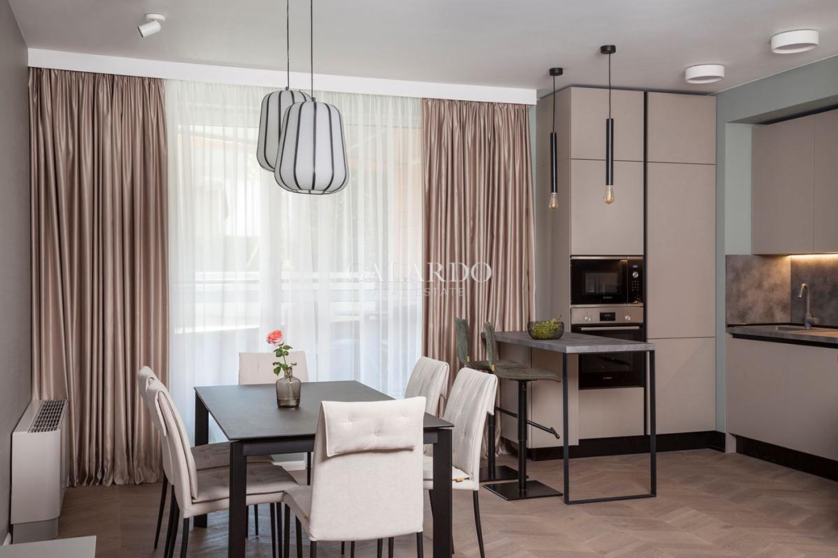Galardo Real Estate Ви представя луксозен апартамент с три спални, стилно обзаведен с внимание към всеки детайл. Имотът е разположен в сграда с контролиран достъп, луксозни общи части, денонощна охрана и видеонаблюдение.