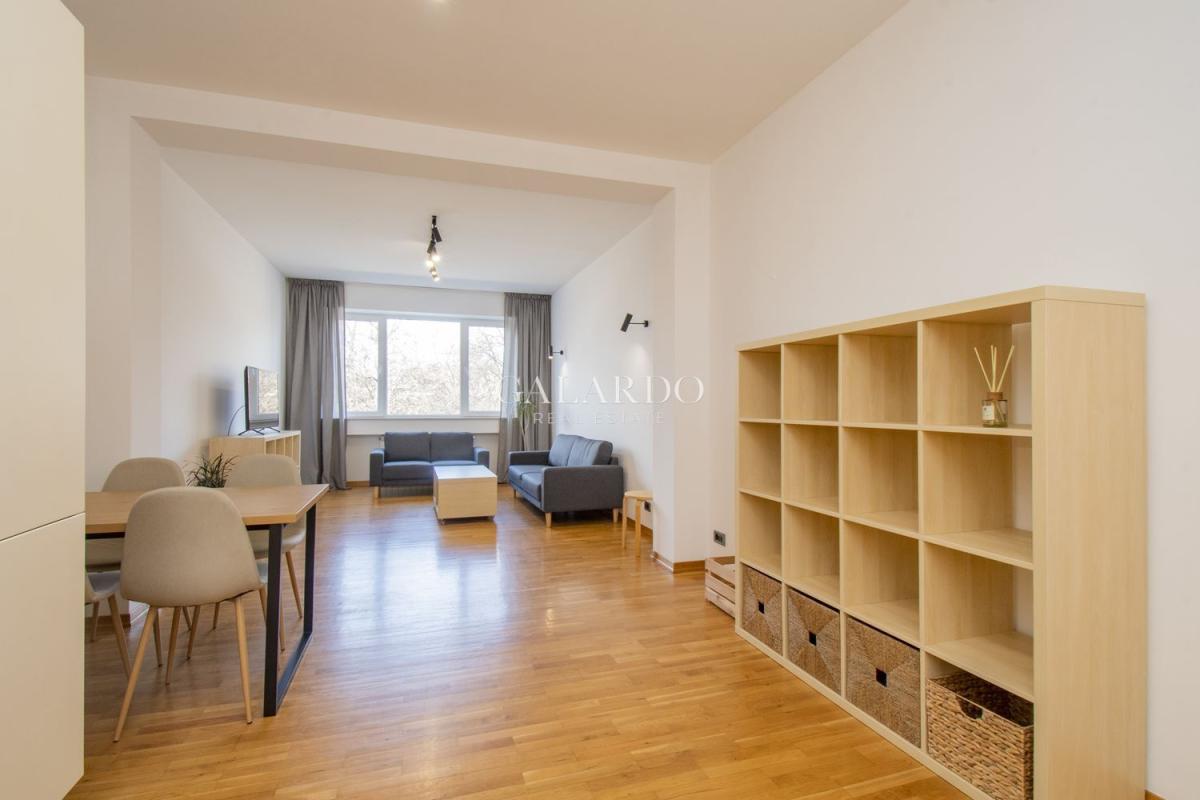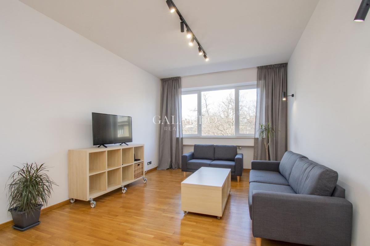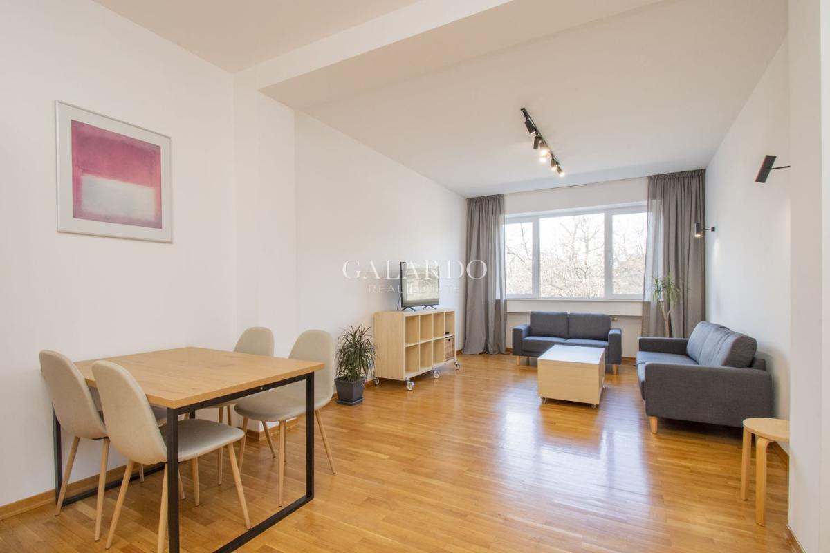 Апартаментът е със просторни и светли стаи с високи тавани, подът е естестевен паркет.