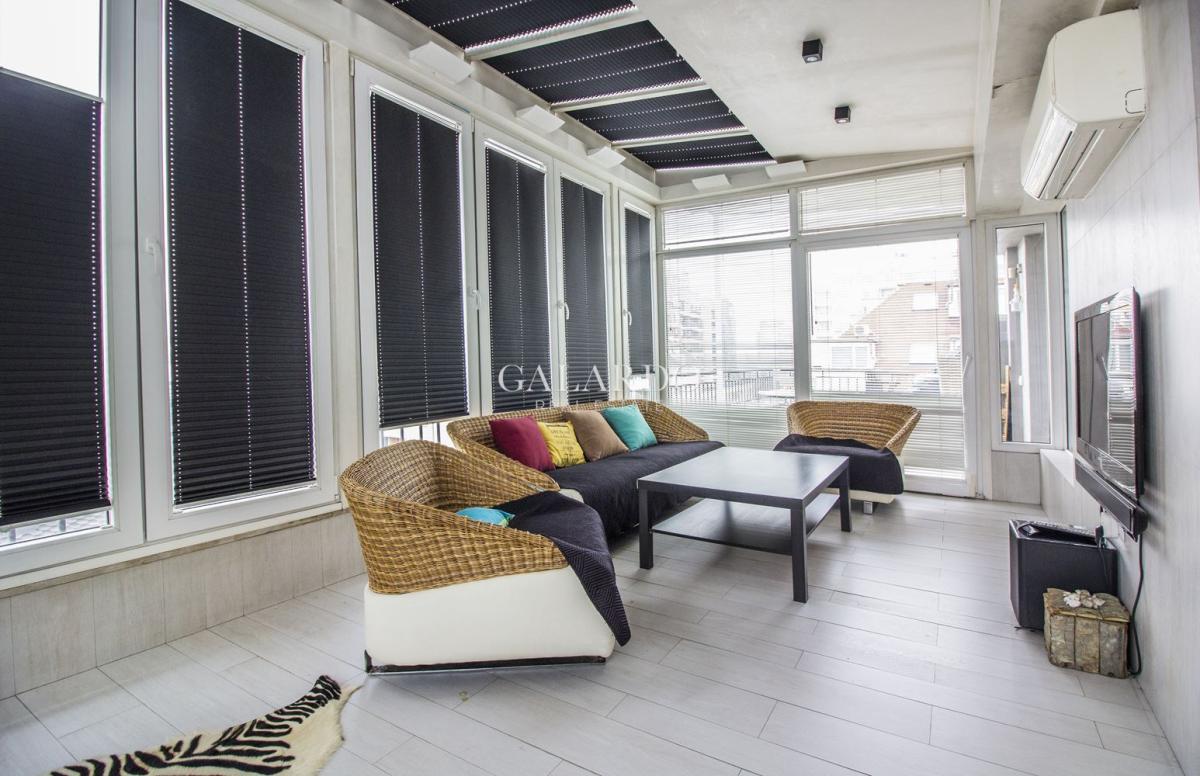 Galardo real estate Ви представя уютен, напълно обзаведен апартамент в затворен комплекс, в близост до бул. България. Имотът е разположен на четвърти, последен етаж, разполага с три тераси и зимна градина. Отоплението е на ТЕЦ, като има климатици във всички стаи. Към жилището има възможност за наемане на гараж и открито паркомясто, на цена от 100 Е.