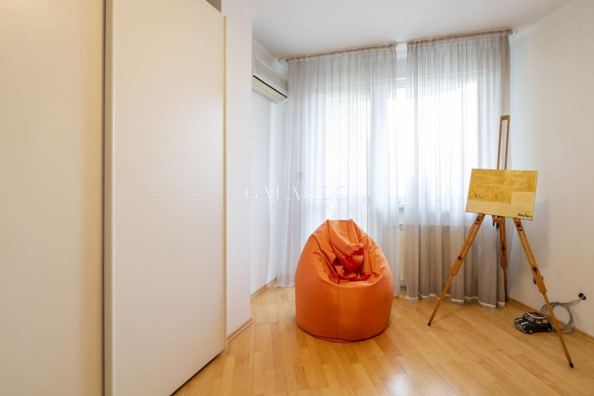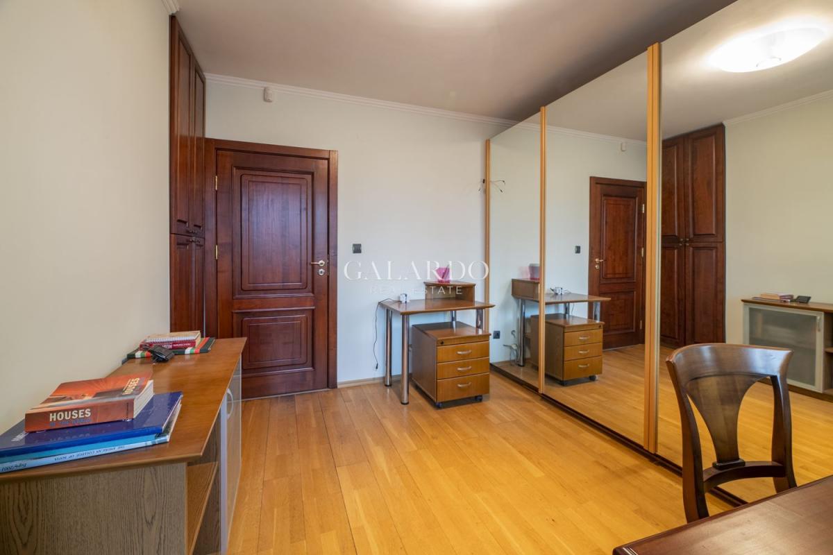 Galardo Real Estate Ви представя стилен, светъл и просторен апартамент на ул. Дуян Белишки. Имотът е обзаведен в класически стил, създаващ уют и домашна атмосфера. Жилището е много светло, топло и тихо, с функционално разпреление. Отоплението е чрез електрическо котле, като има климатици във всички стаи, както и чудесна камина в дневната. Към жилището има гараж на цена от 100Е.