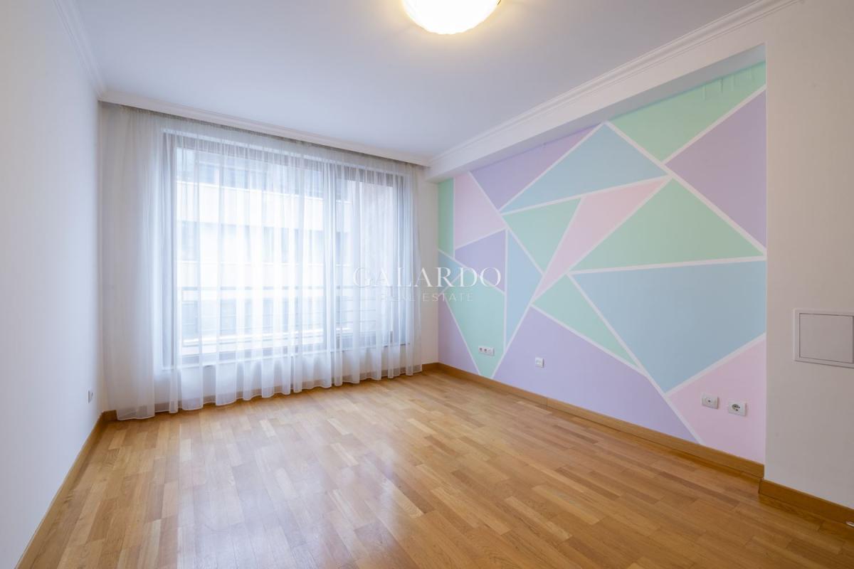 Апартаментът е необзаведен с изключение на кухняата и баните. Настилките са от естествен паркет и гранит. Има централна климатизация. Сградата е много добре изолирана и апартаментът е много топъл.