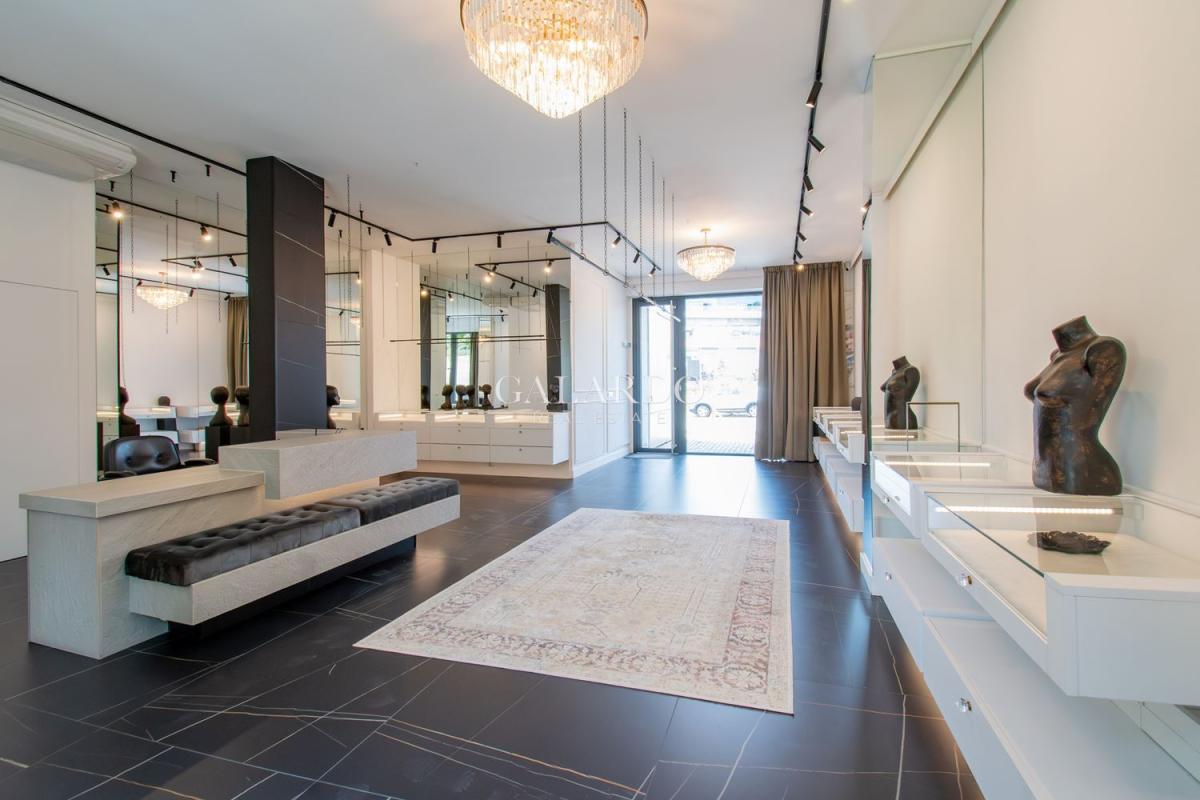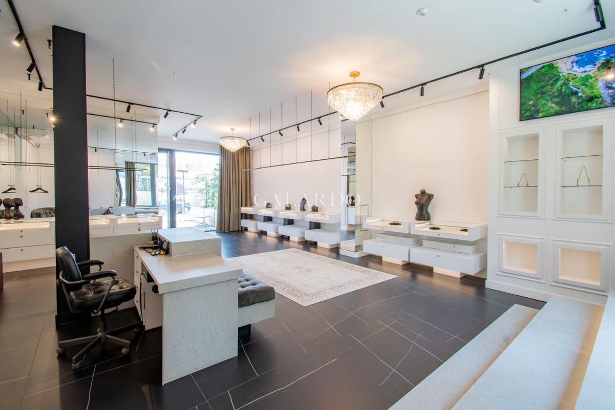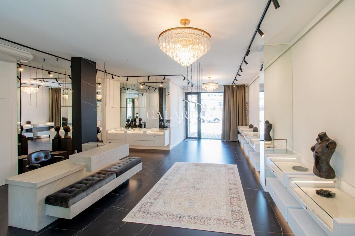 Помещението излъчва стил, класа и спокойствие и е подходящо за галерия, бутиков шоурум, арт или дизайнерско студио, както и за магазин за различна дейност, зала за индивидуални тренировки. Оборудването включва: вградени, осветени шкафове с чекмеджета, облицовани с плюшена тапицерия, диван, дизайнерски осветителни тела полилеи и насочващи светлини, видео проектор с екран подходящ за презентации, арт инсталации или креативен брандинг, трелевизор, професионални релсови системи за окачване на картини. Магазина е със система за видеонаблюдение и врата с видеодомофон.