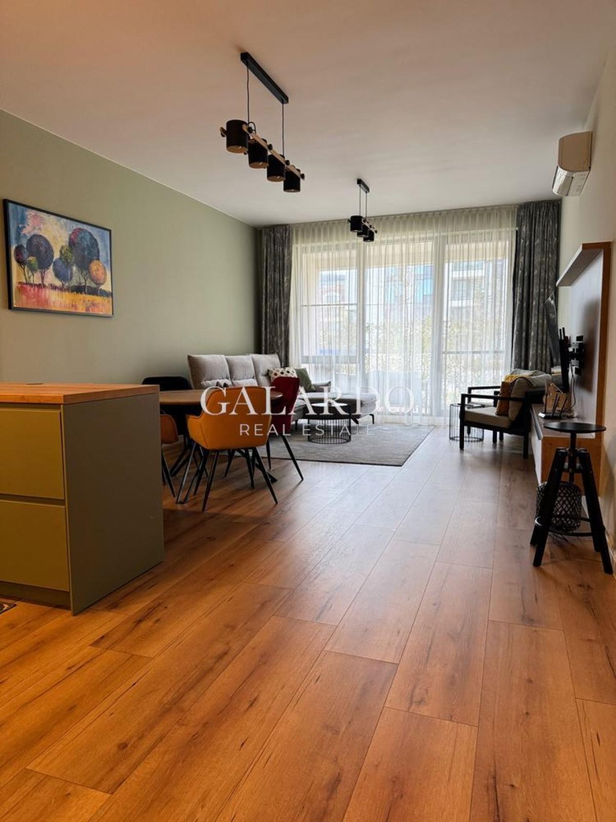 Galardo Real Estate предлага на вашето внимание отличен луксозно обзаведен апартамент под наем със собствен двор и паркомясто в комплекс от затворен тип Sofia Land Residence. Апартаментът е разположен на партерен етаж, с излаз на собствен двор от 50 кв.м., ориентиран към вътрешния двор на комплекса от 17 декара със собствени алеи и озеленяване. Високи тавани от 3 м, естествен паркет във всички стаи. Отоплението е посредством ТЕЦ, за допълнително удобство са поставени допълнителен бойлер и климатици във всички стаи: сплит система на Mitsubishi.