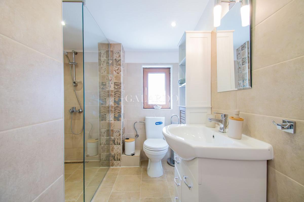 Апартамента е с интересно разпределение - холът и кухнята се намират на първо ниво, където е и кокетната слънчева тераса с масичка и столчета , за да се насладите на сутрешното ви кафе. На същото ниво се намира и тоалетна.