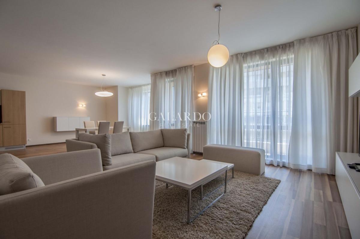Galardo Real Estate Ви предлага четиристаен апартамент в луксозна нова сграда в район Лозенец, в близост до Кемпински хотел Маринела. Централното отопление е на ТЕЦ, има изградена VRV климатична система, подовите настилки са ламинат, гранитогрес, камък, дограмата е PVC. Сградата е снабдена още със структурно окабеляване, луксозен панорамен асансьор, луксозно фоайе с рецепция, ресторант, видеонаблюдение, пожароизвестяване и денонощна охрана. подовите настилки са ламинат, гранитогрес, камък, дограмата е PVC.