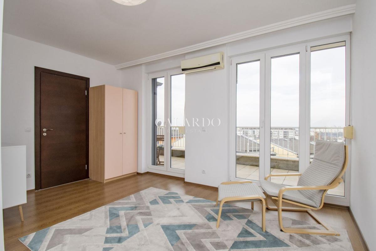 Апартаментът е разположен на 3-ти етаж. и е с чудесни гледки към Витоша и града. Напълно обзаведен с висок клас мебели и оборудван кухненски кът. Едната стая е частично обзаведена. Отоплението е на газ, има и климатици.
