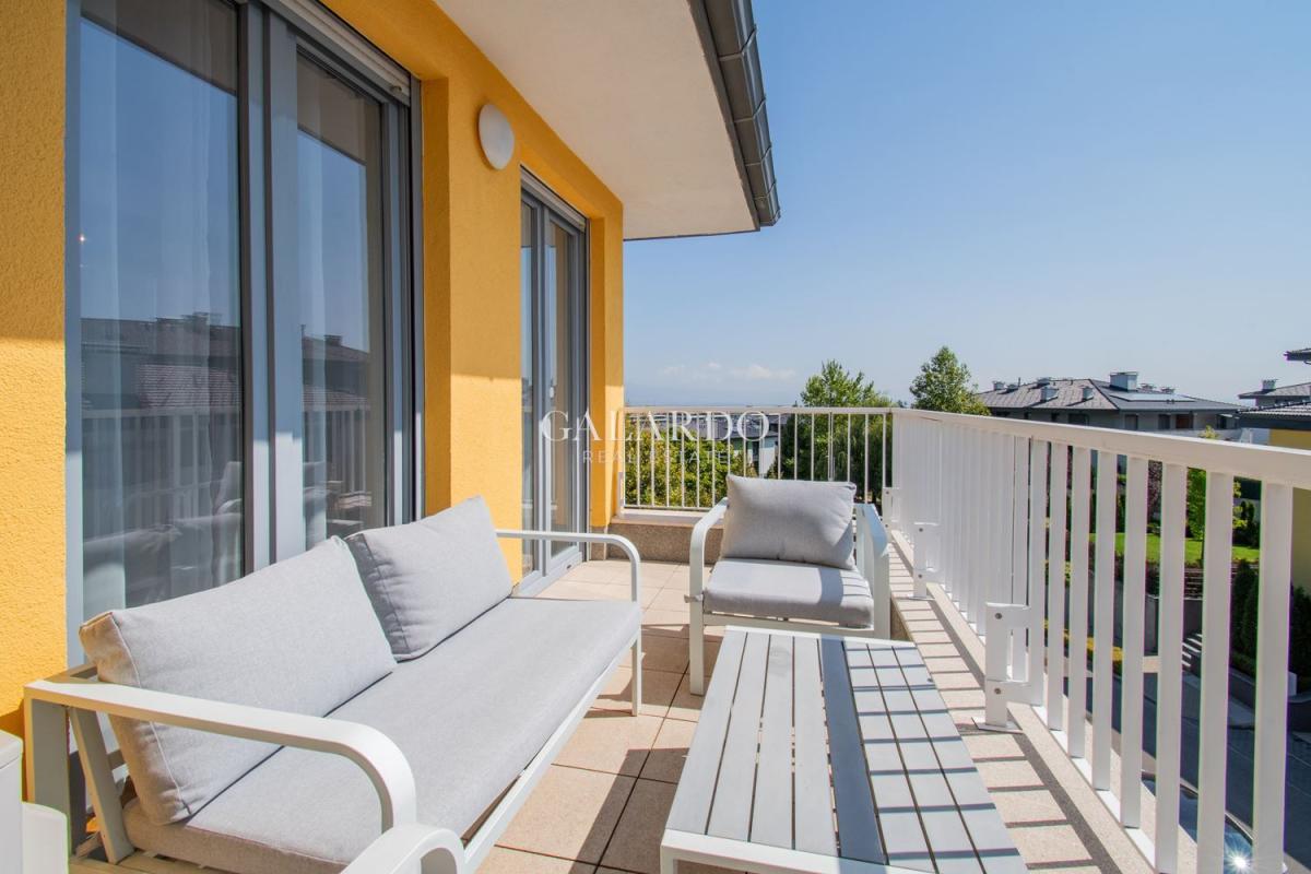 Апартаментът се състои от просторна дневна с трапезария и кухня, 2 спални, баня с тоалетна и 2 тераси, от които се откриват прекрасни гледки и зеленина. Отопление на газ, има и монтиран климатик.