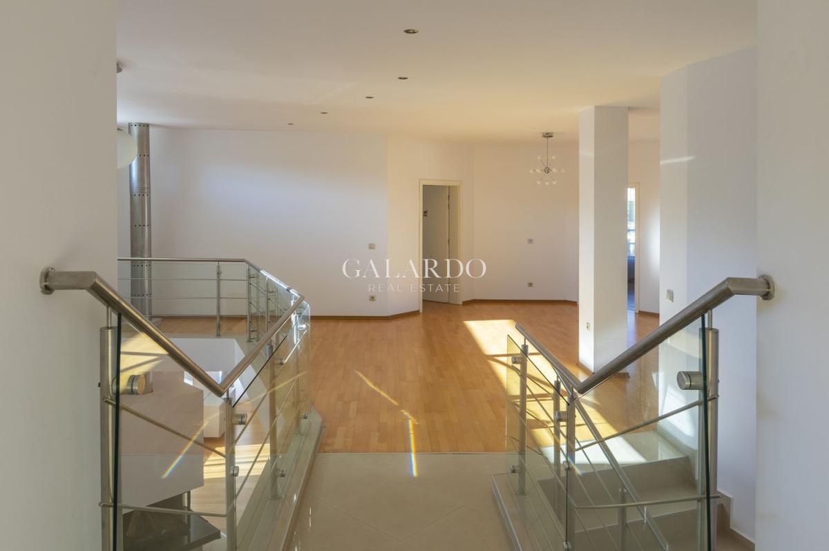 - Втори етаж: емпоре, 4 спални, баня с душ кабина, вана и тоалетна; една баня с душ кабина и тоалетна, тераса към две от спалните
