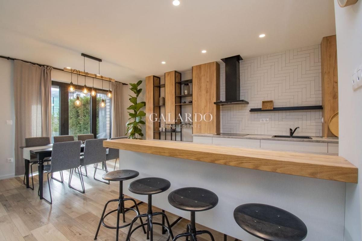 Къщата се предлага напълно обзаведена, със съвременна оборудвана кухня. Стаите са просторни и светли. Подовите настилки в имота са висок клас ламинат.