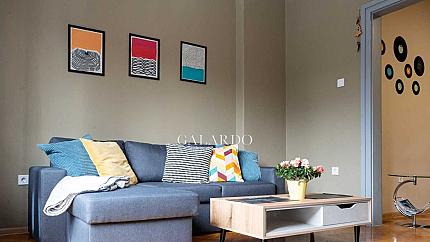Galardo Real Estate отдава под наем просторен и слънчев тристаен апартамент срещу НДК. Площ на имота: 100 кв.м. Етаж: висок първи етаж над партер. Имотът е след основен ремонт. Състои се от просторен хол с трапезария, две отделни спални, напълно обзаведена кухня, пералня със сушилня, баня с тоалетна и три балкона. От тях се открива уникална гледка към парк НДК и Витоша. Намира се на метри от метростанция НДК и различни спирки на градския транспорт. Изисквания: един наем и два депозита.