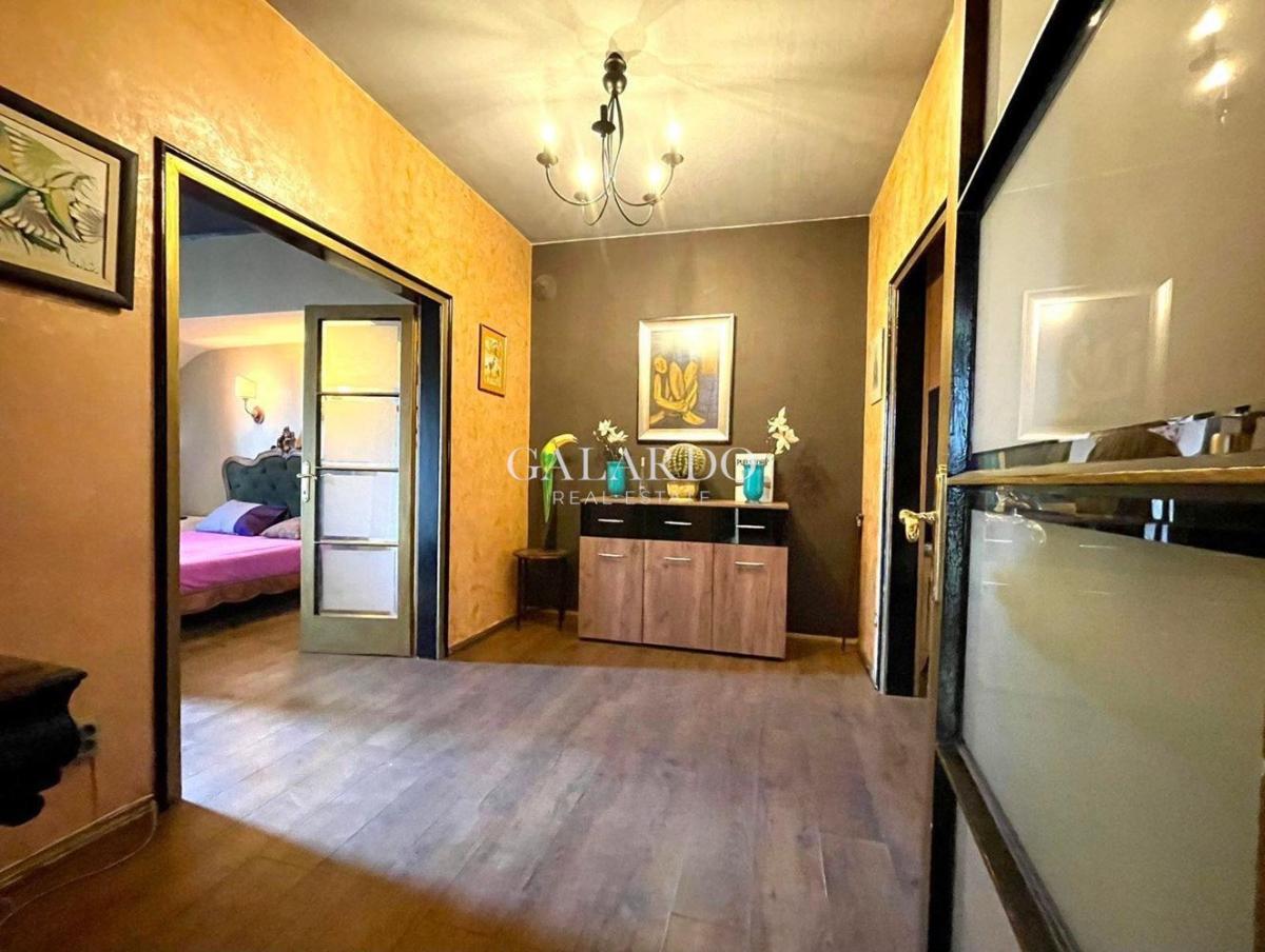 Апартаментът е обзаведен с внимание към детайла, съчетаващ класическа елегантност и съвременен комфорт. Светлите помещения и наличието на отделна гардеробна осигуряват удобство, организация и усещане за пространство.
