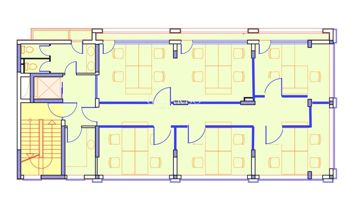 Galardo Real Estate има удоволствието да представи на Вашето внимание просторен офис в кв. Овча Купел. Отлична локация, непосредствено до значими пътни артерии, удобен обществен транспорт и метростанция. Офисът разполага с двоен под, окабеляване и видеонаблюдение. Отоплението е решено с централна климатизация. В цената е включена такса за поддръжка. Има възможност за наем на до десет паркоместа на цена от 75 евро и склад 20 кв. м. на цена от 150 евро. Цените са без ДДС.
