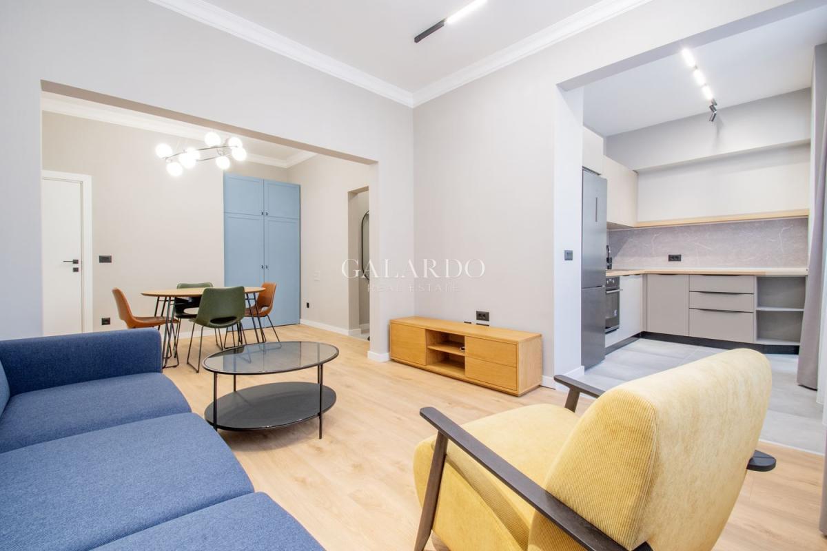 Апартаментът е основно реновиран с висок клас материали и завършен по проект на реномиран дизайнер.