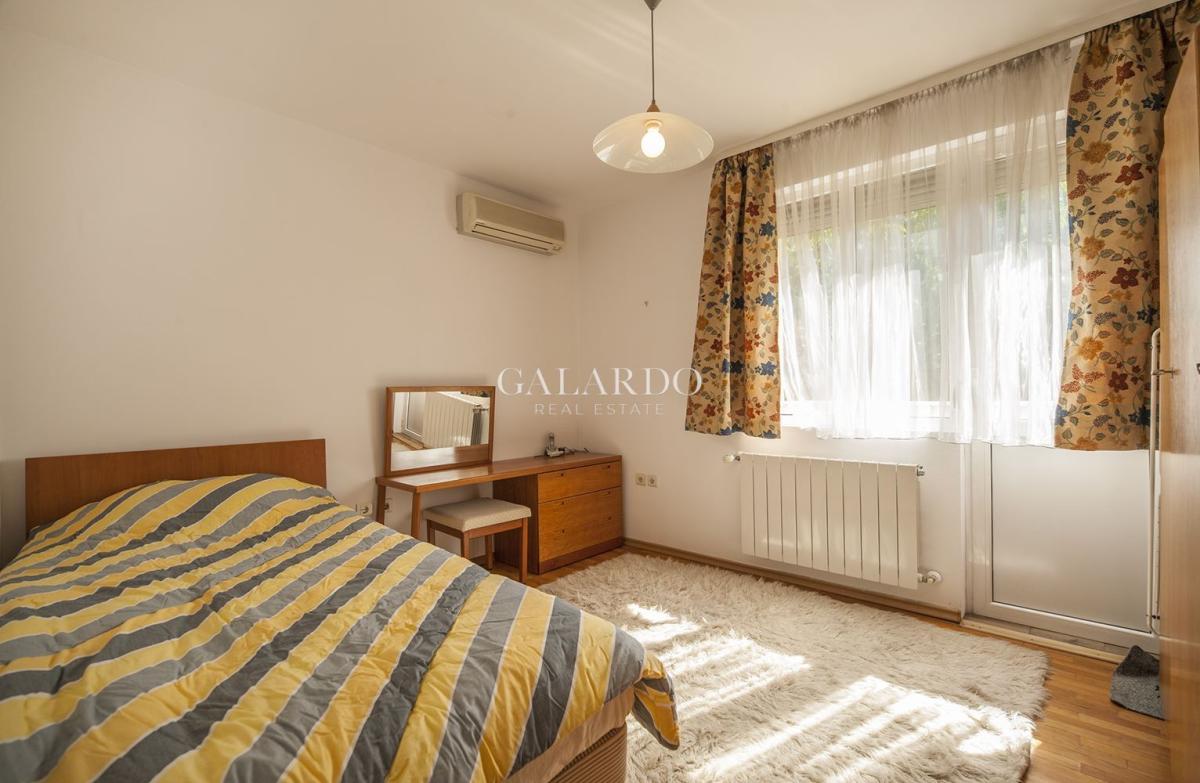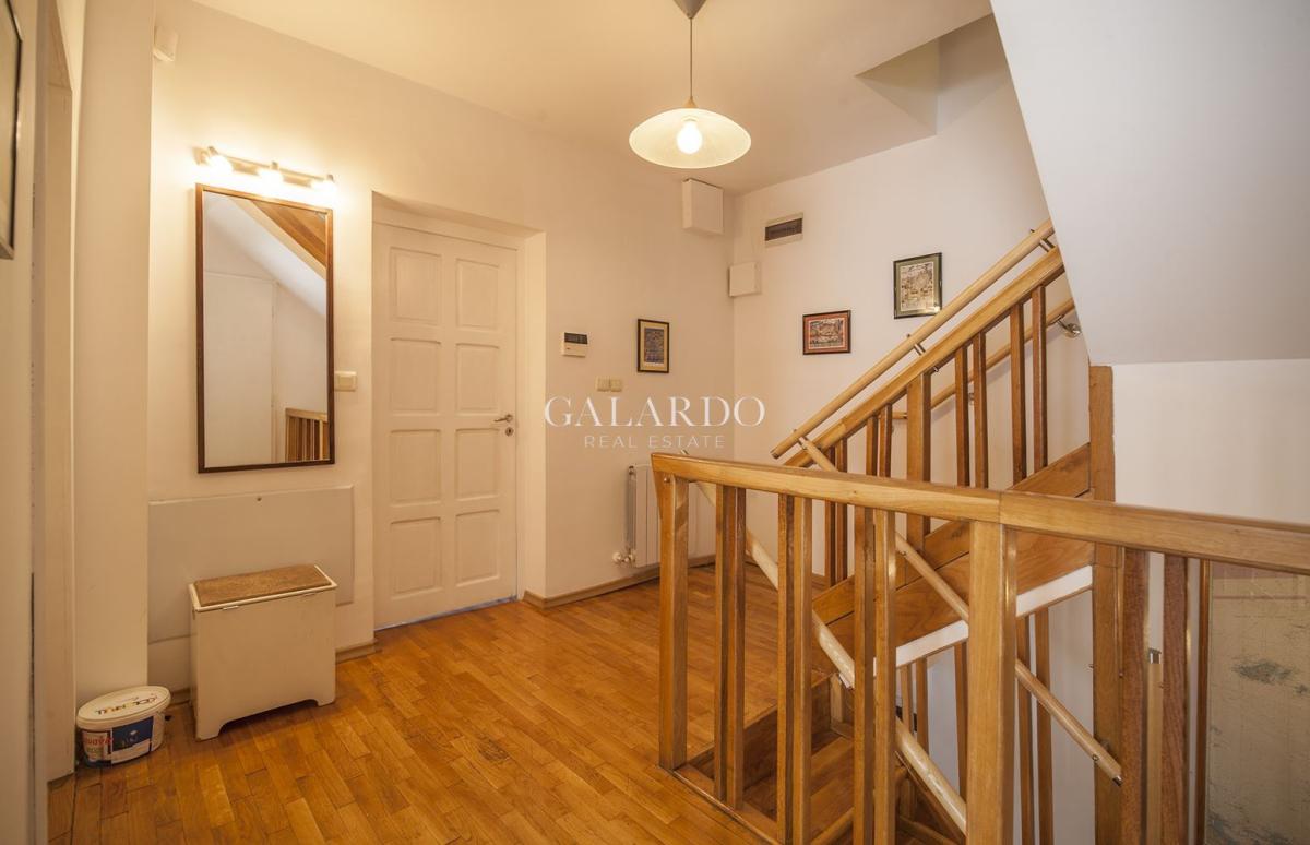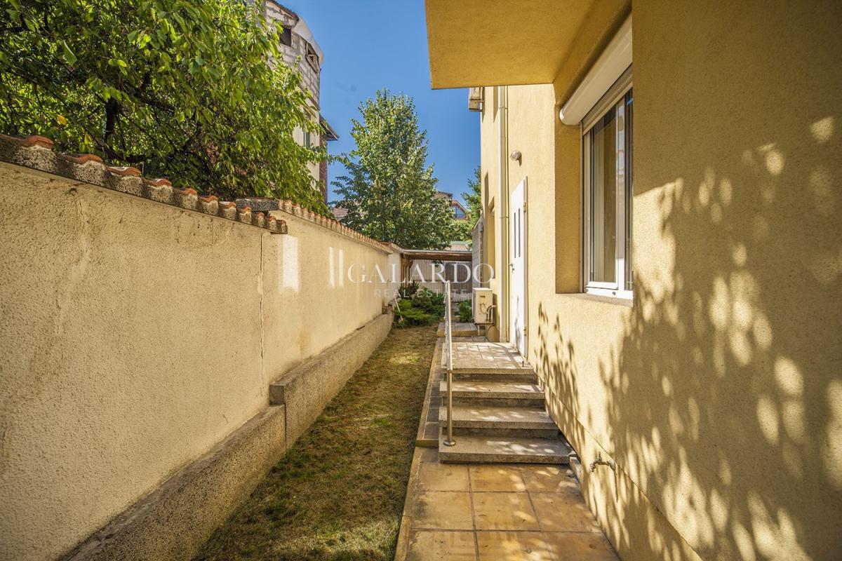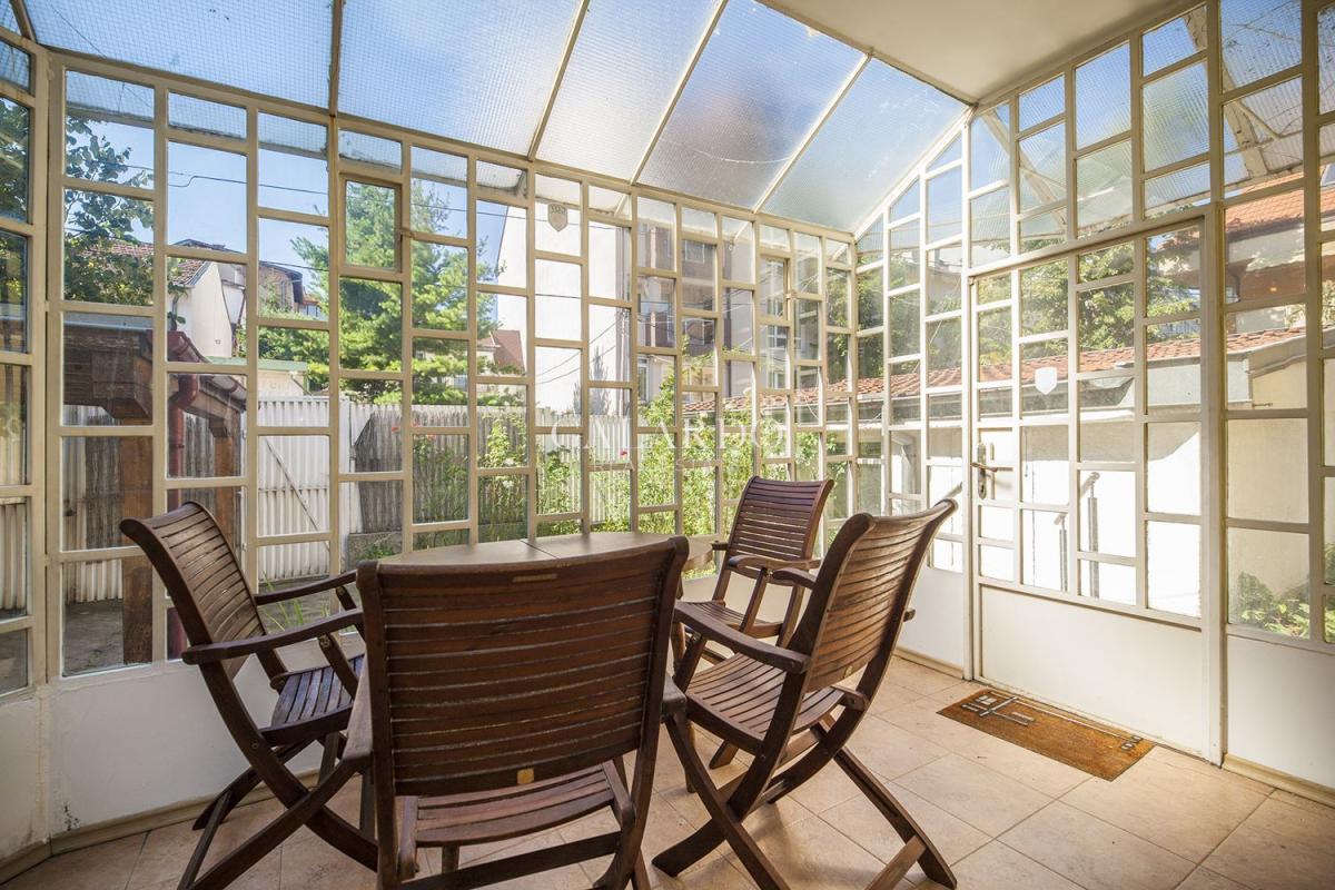 Къщата е на три етажа, с две градини и градинска мебел в зимна градина.