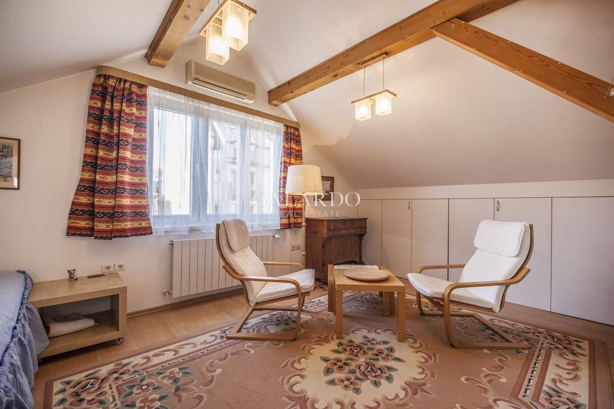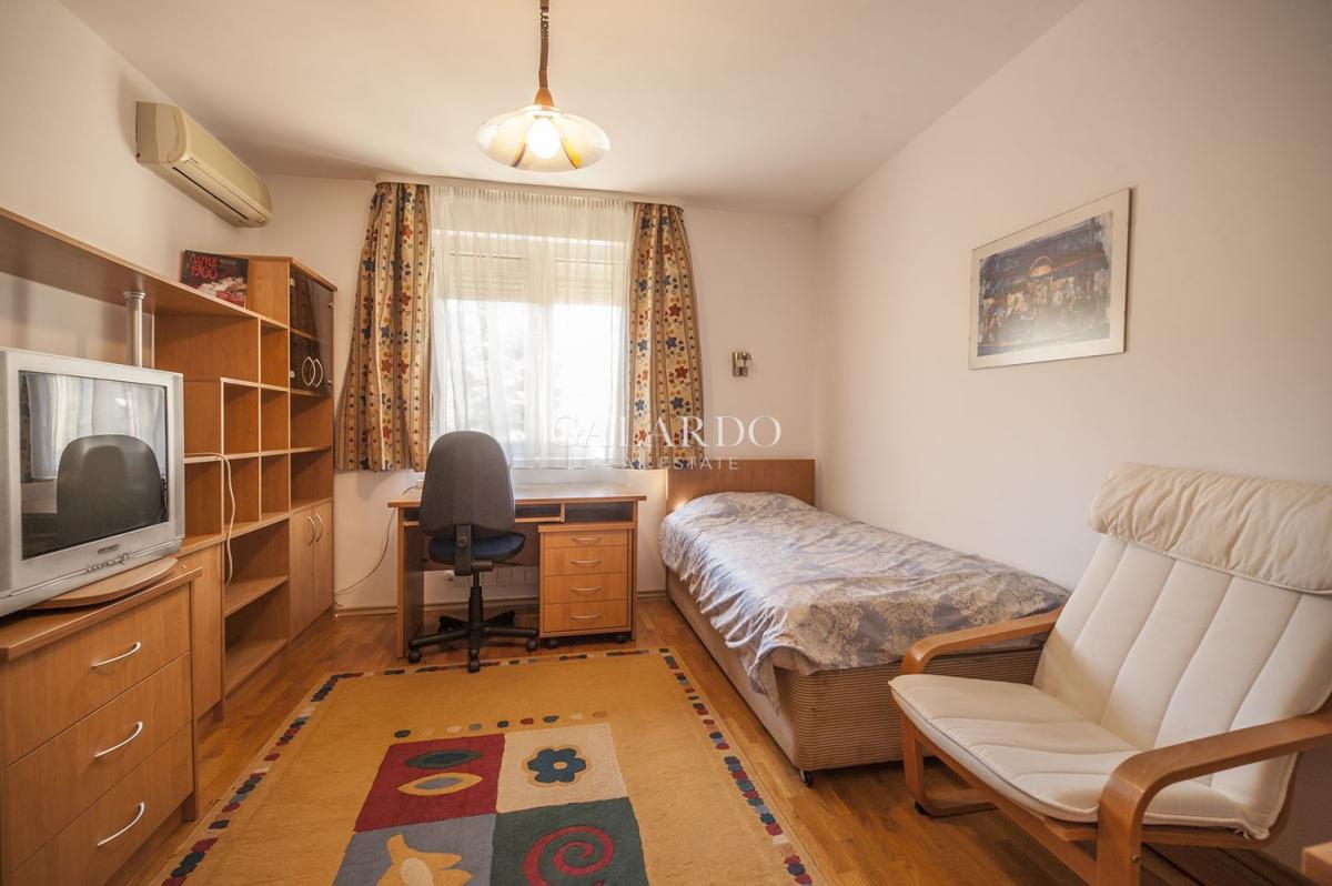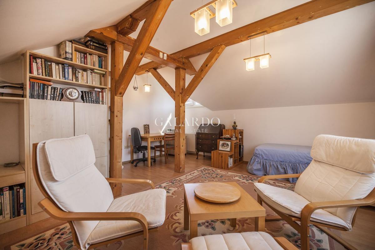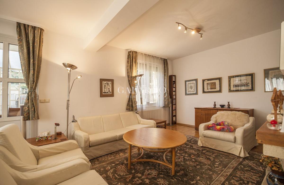 Къщата е на три етажа, с две градини и градинска мебел в зимна градина.