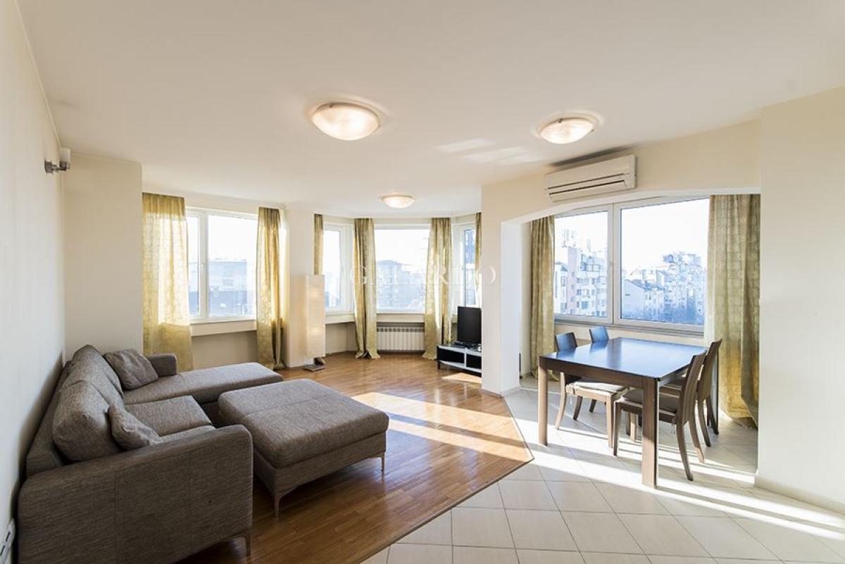Galardo Real Estate представя под наем елегантен и обзаведен апартамент с три спални в сграда до моста Чавдар.