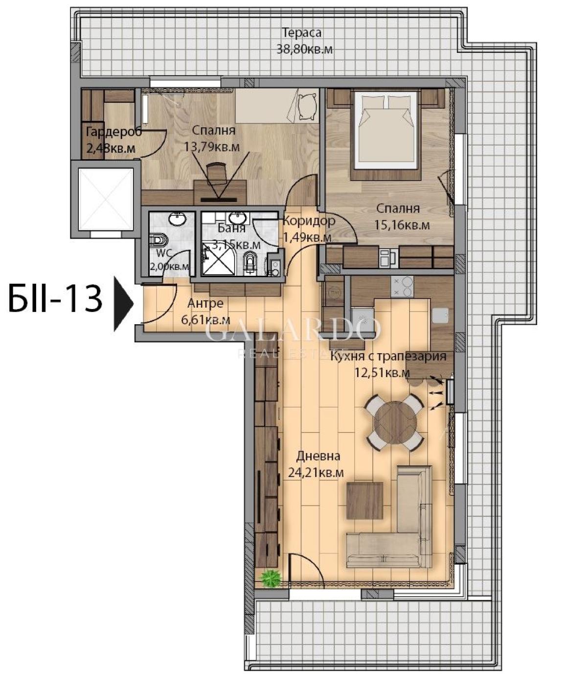 Galardo Real Estate представя на Вашето внимание луксозен тристаен апартамент в представителен затворен комплекс в полите на Витоша.