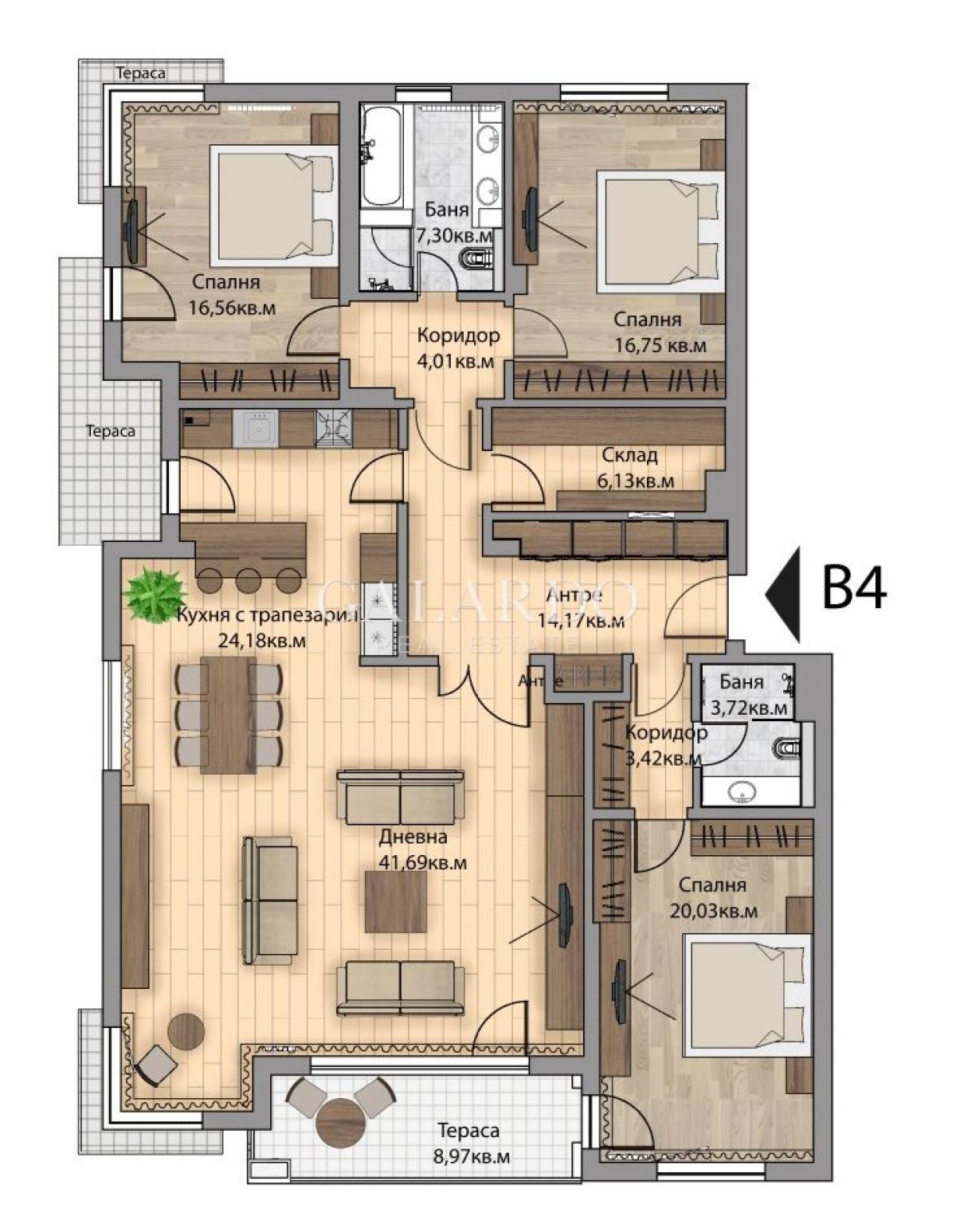 Galardo Real Estate представя на Вашето внимание луксозен четиристаен апартамент в представителен затворен комплекс в полите на Витоша.
