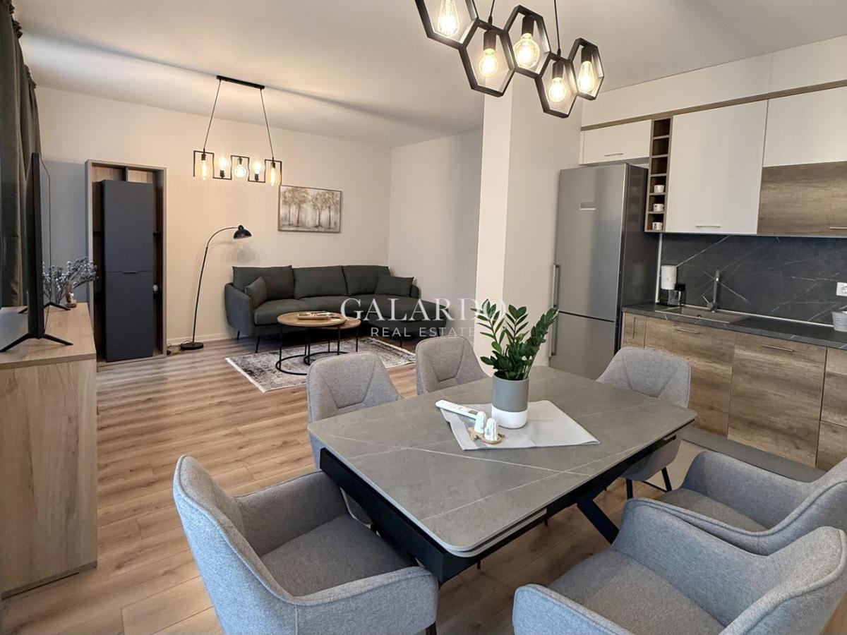 Обзаведен е с мебели по поръчка и вградени уреди висок клас.