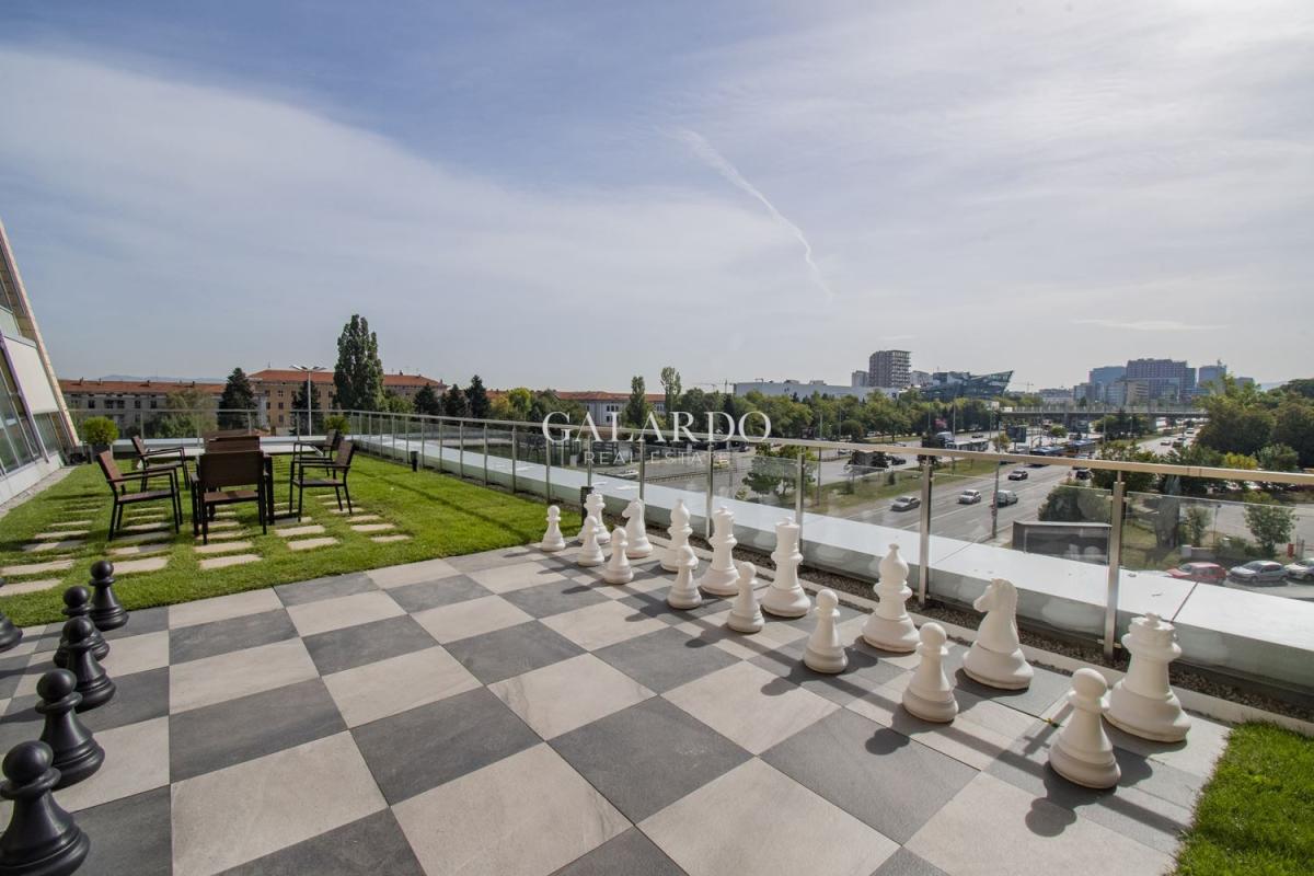 В наемната цена е включено безплатно използване на споделено релакс пространство с две голями тераси от общо 300 кв.м, подходящи за релакс, алтернативно място за работа и срещи, конференции, фирмени събития и др.