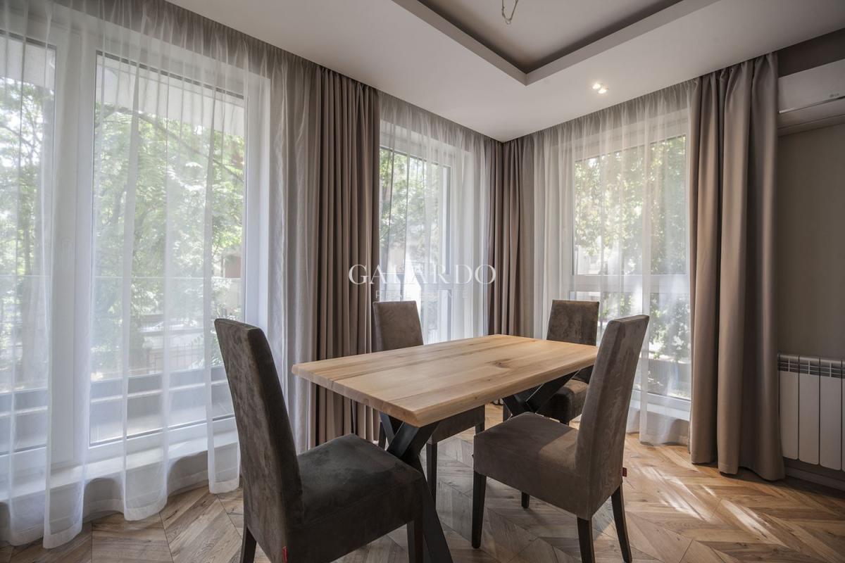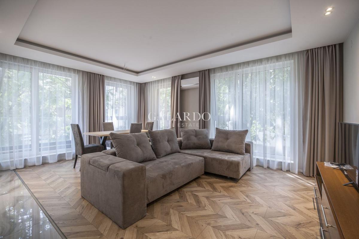 Жилището е изцяло обзаведено и завършено с висок клас подови настилки.