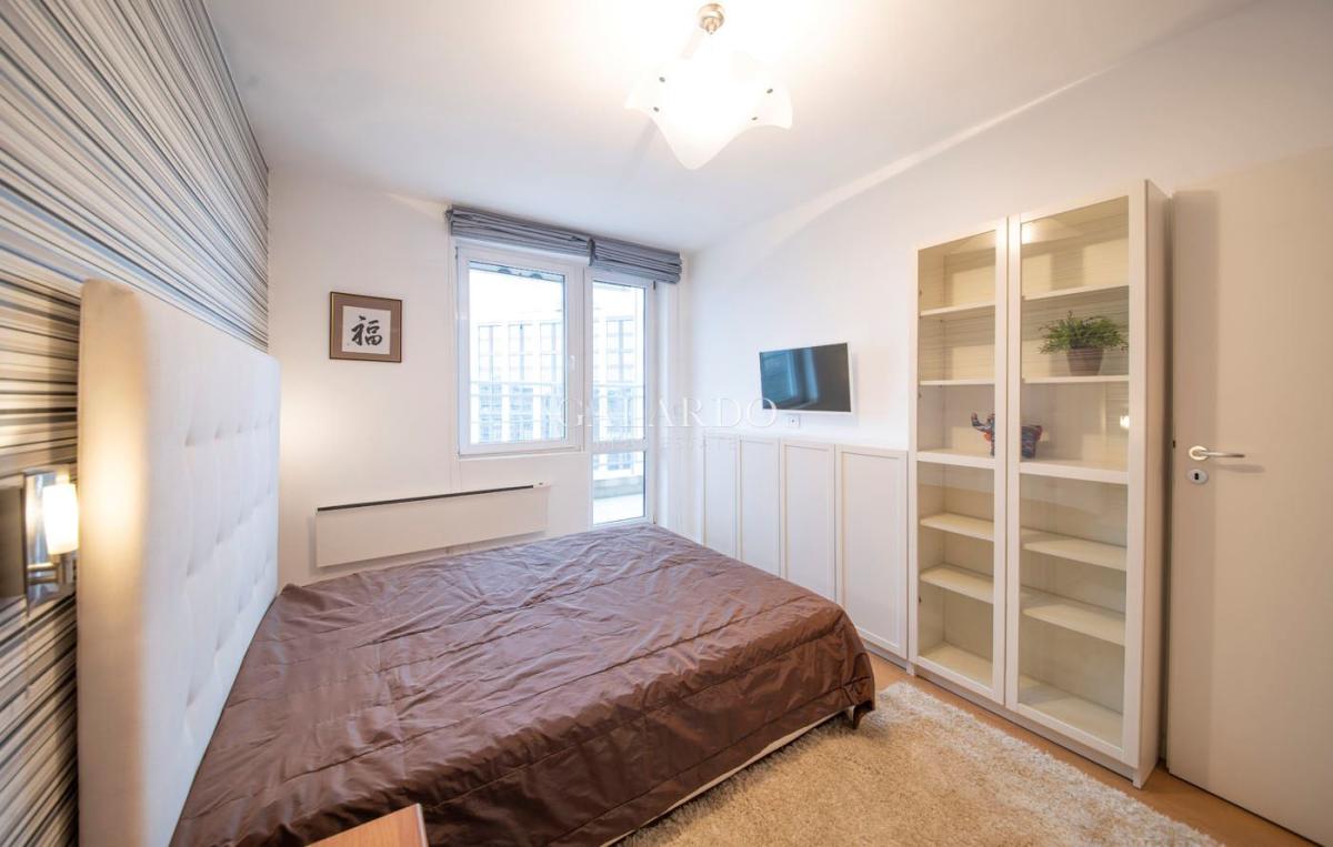 Апартаментът се намира на ет. 5 от 7 в нова сграда с асансьор. Отоплението е решено на ток, с нови радиатори ADAX.